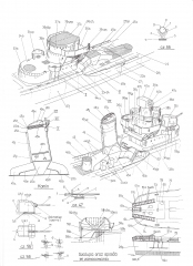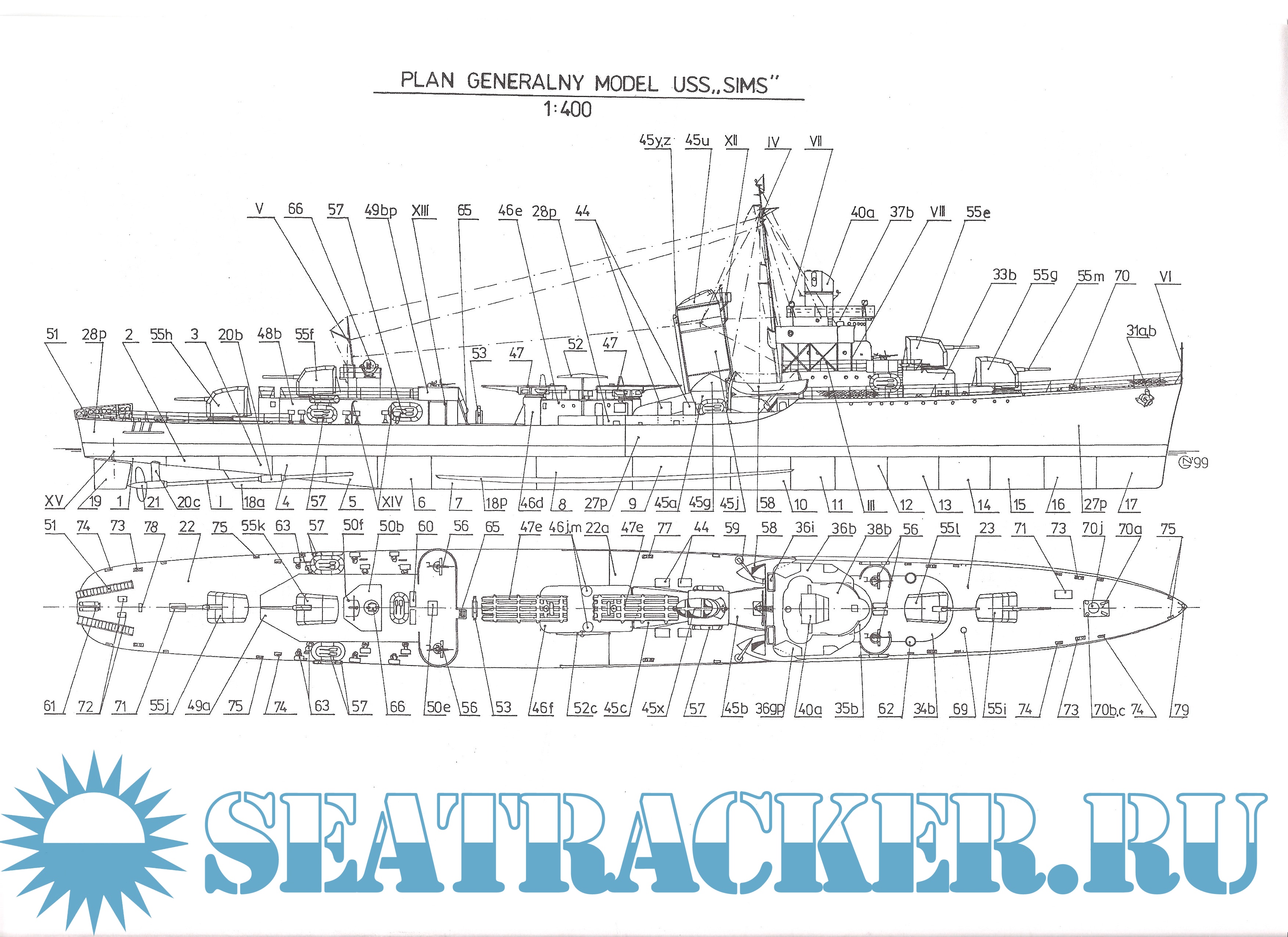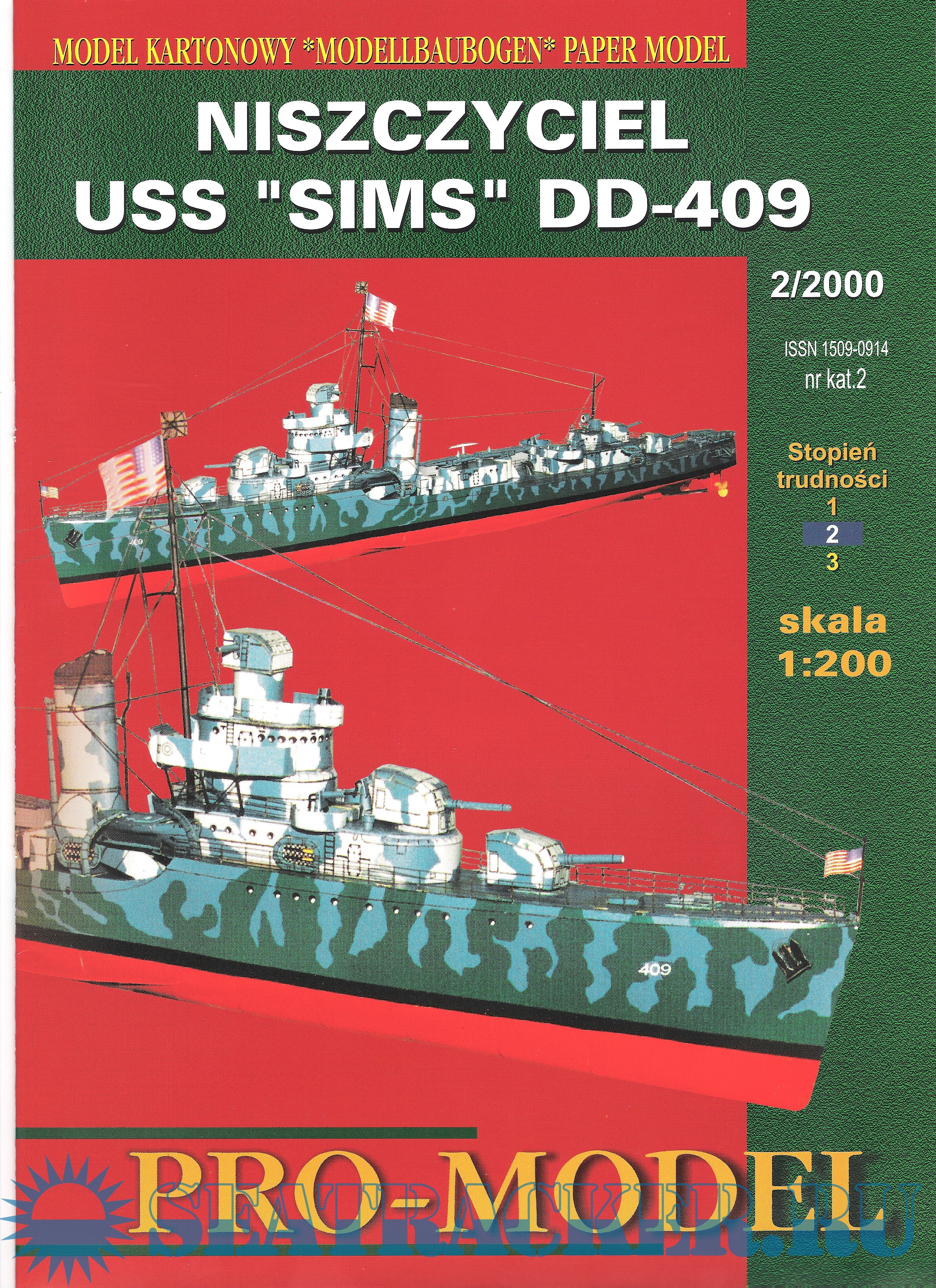 Описание: 17 листов цветных выкроек и инструкций для изготовления бумажной модели эсминца США Sims DD-409 в масштабе 1:200