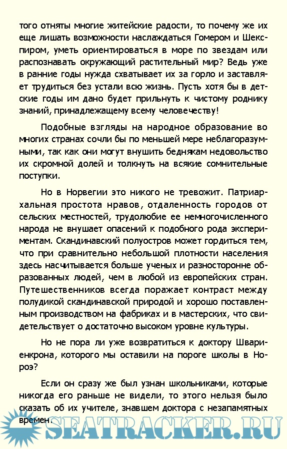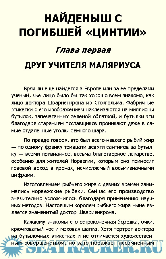 Описание: Эрик знает, что он не родственник семейству Герсебомов, но это совсем не значит, что он им не родной. Поэтому Эрик всеми силами хочет им отплатить, помогая в рыболовном промысле и стремясь быть лучшим в учёбе. Это замечает один богатый господин и даёт юноше шанс изменить свою жизнь, покинуть деревню и покорить целый мир. Но Эрик совсем не тщеславен и отказался, если бы не тайна его происхождения связанная кораблем «Цинтия». И вот юный авантюрист отправляется в кругосветное плаванье полярными водами по следам человека, которой 16 лет назад, также как и маленький Эрик, плыл на злополучной «Цинтии». Нас ждет 7 месяцев отважных приключений героев и хитроумных козней недоброжелателей. Как всегда мсье Верн порадует подробностями истории, в данной книге это открытие арктических морских путей. По поводу соавторства Жюль Верна и Андре Лори ничего не могу сказать, с творчеством второго совсем не знакома. В предисловию к роману говорится, что Андре Лори был литературным учеником Верна. Но сама идея романа принадлежит как раз таки Лори. Читая, пронизываешься атмосферой ледяных фьордов. Хотя, если откровенно, в тексте есть заискивающая вежливая манера, от чего местами читать становится приторно. В произведениях Жюля Верна искренний, честный, совестливый человек может снискать доброе расположение к себе именно благодаря своим хорошим качествам! Тяжелый физический труд простых людей противопоставляется всезнающему невежеству высокомерных. Кто более благороден – решать читателю.
