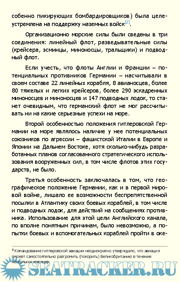 Описание: В книге дается обстоятельный анализ борьбы на океанско-морских сообщениях между державами «оси» и странами антигитлеровской коалиции; подробно рассматриваются характер и значение океанских перевозок на различных этапах второй мировой войны, формы и методы нападения на сообщения и их защиты, особенности использования в этой борьбе подводных лодок, авиации и надводных сил. На конкретных материалах показаны факторы, влиявшие на борьбу, и зависимость её исхода от развития событий на советско-германском флоте.