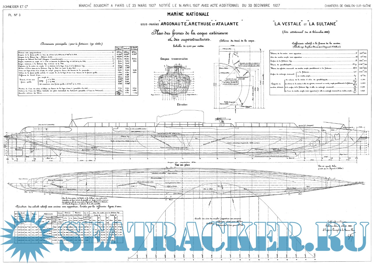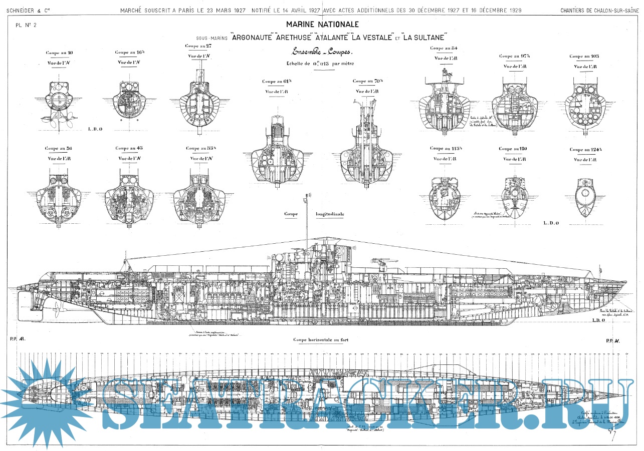 Архивные чертежи французской подводной лодки ARETHUSE 1929 год