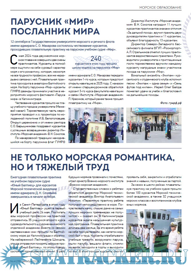 Описание: Целью информационного печатного издания является информационное освещение всех направлений морской деятельности Санкт-Петербурга: морской и речной транспортной деятельности, военно-морской деятельности, деятельности по эксплуатации портовой инфраструктуры, судостроения, деятельности по обеспечению экологической безопасности морского и речного судоходства, морского образования и науки, морского и речного туризма, парусного спорта и маломерного флота, деятельности по изучению, освоению и использованию Мирового океана и многое другое.
