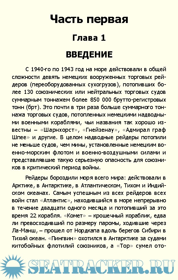 Описание: Автор рассказывает о знаменитых пиратских рейдах немецких кораблей в XX веке. Эти мощные плавучие арсеналы, замаскированные под безобидные нейтральные сухогрузы, своими действиями умело и планомерно вносили хаос в систему торгового судоходства противника. За первые три самых успешных для них года рейдеры потопили почти втрое больше кораблей, чем весь немецкий надводный флот Книга основана на подлинных материалах; представлены официальные отчеты, записи бортовых журналов, свидетельства очевидцев