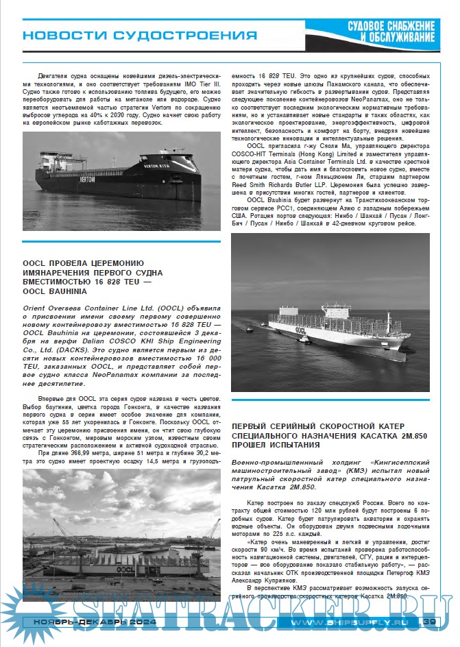 Судовое снабжение и обслуживание ноябрь - декабрь 2024