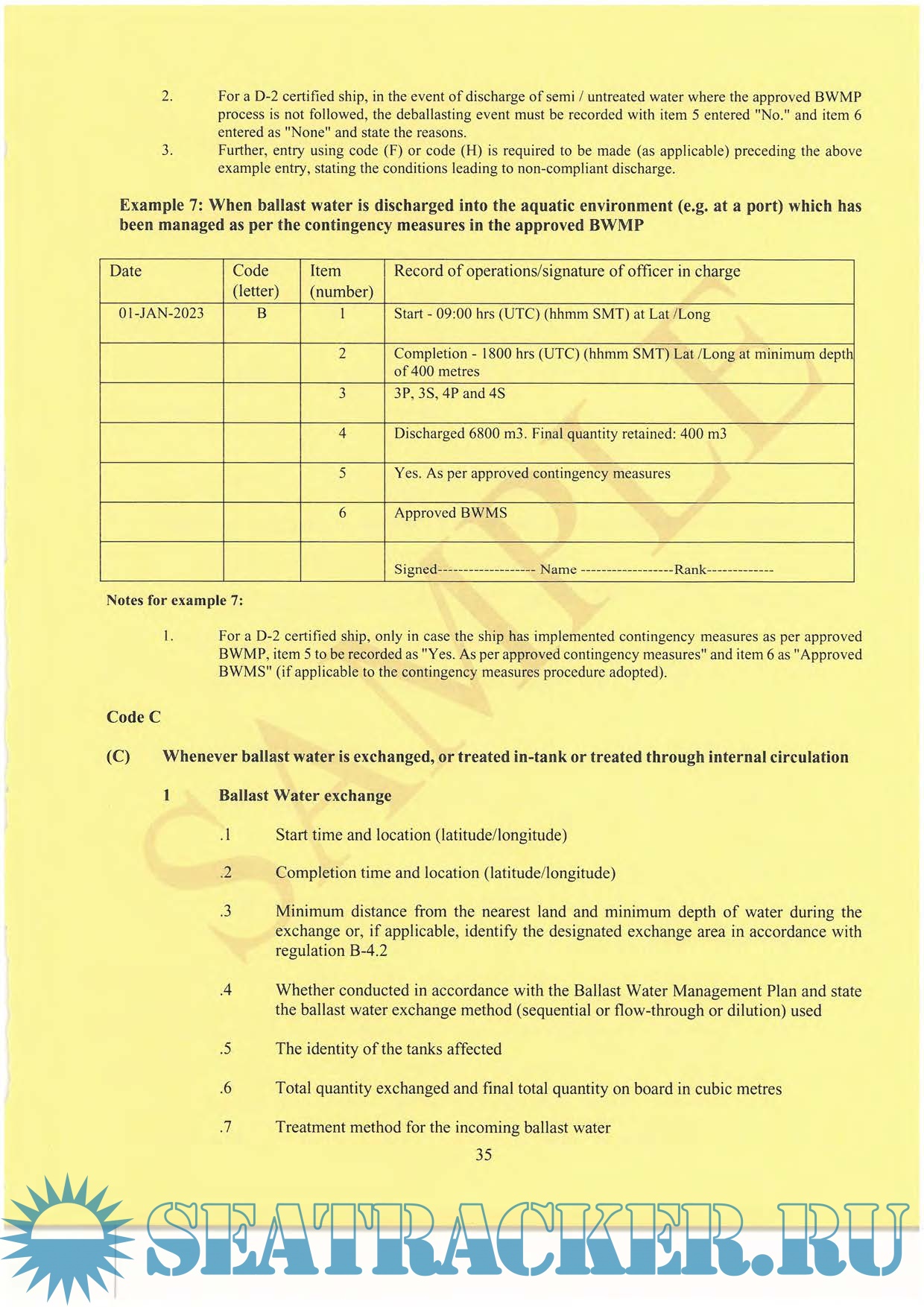 Ballast Water Management Record Book requirements - DBS [2022, PDF]