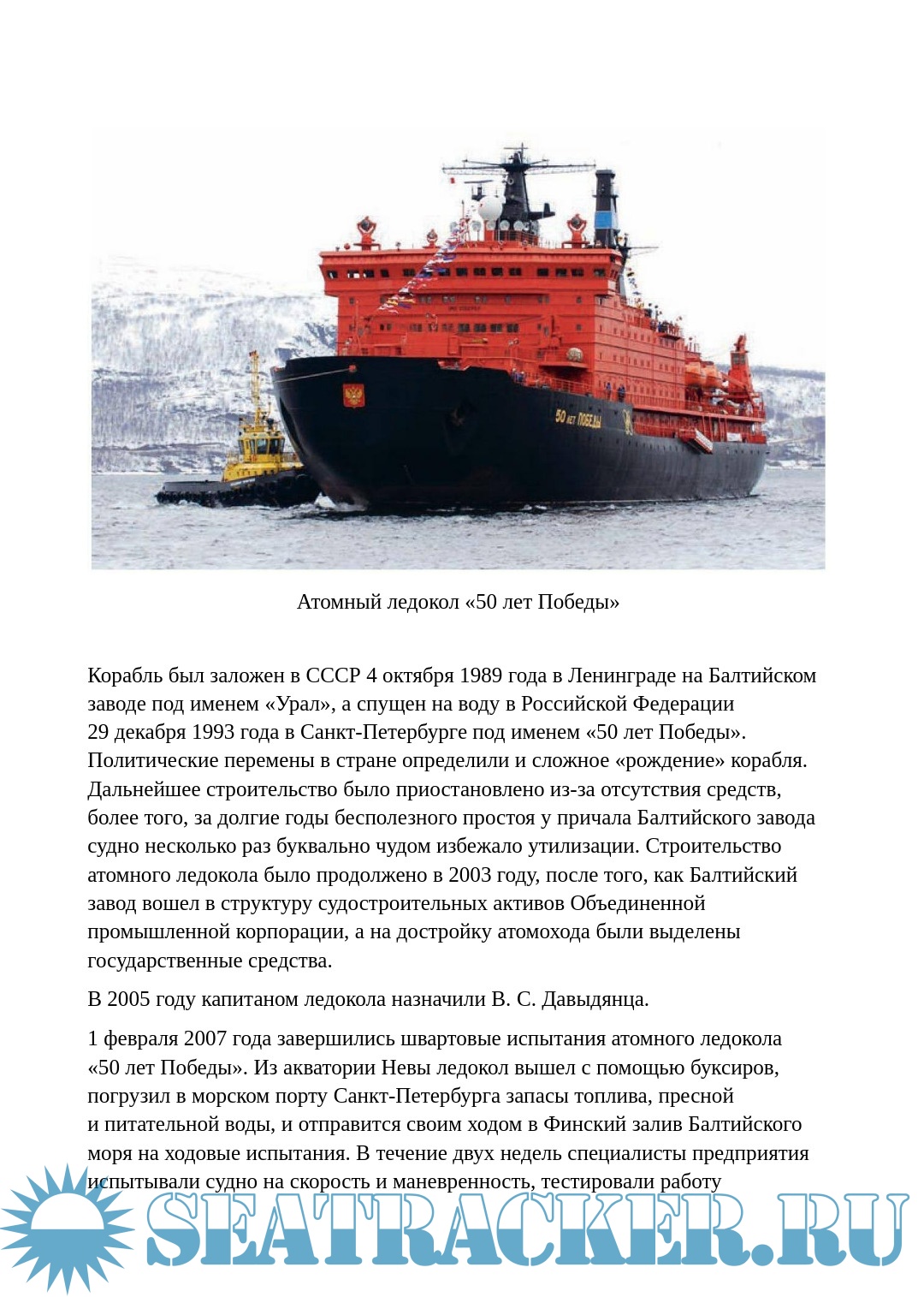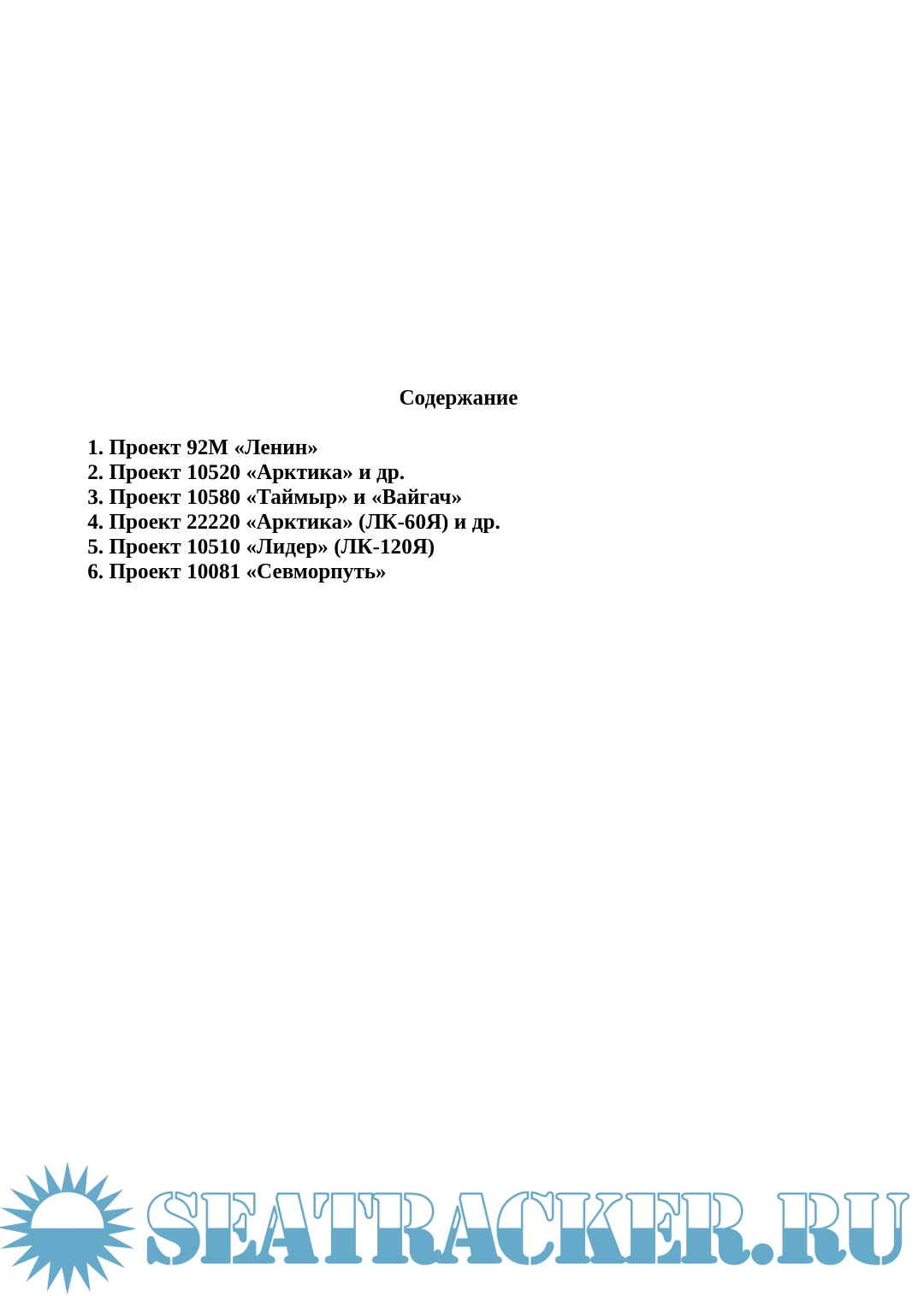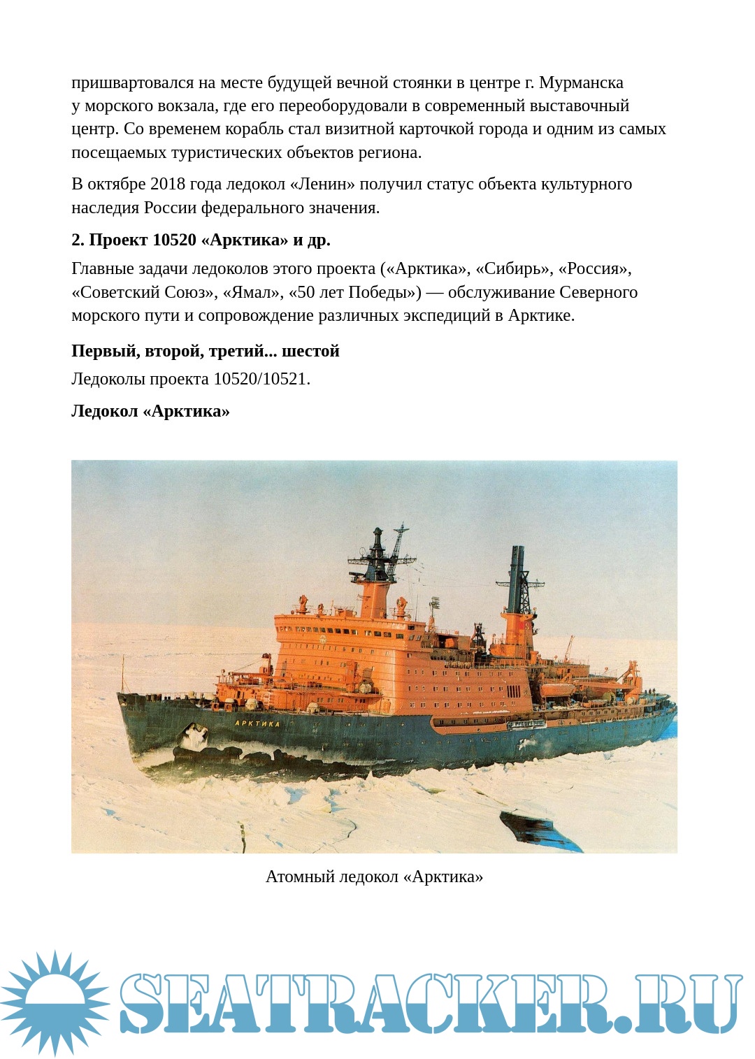 Приведены характеристики и история строительства всех отечественных атомных ледоколов, включая атомный лихтеровоз «Севморпуть».