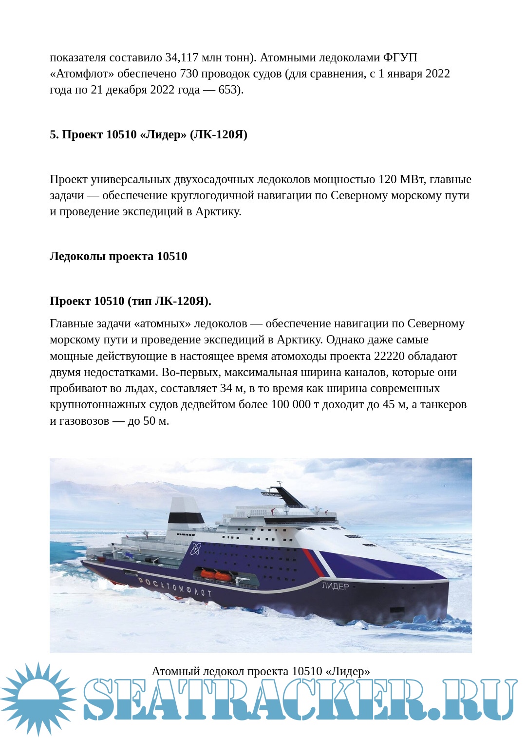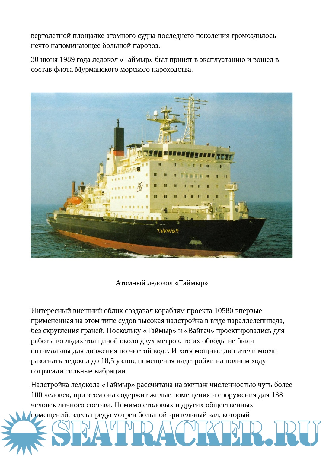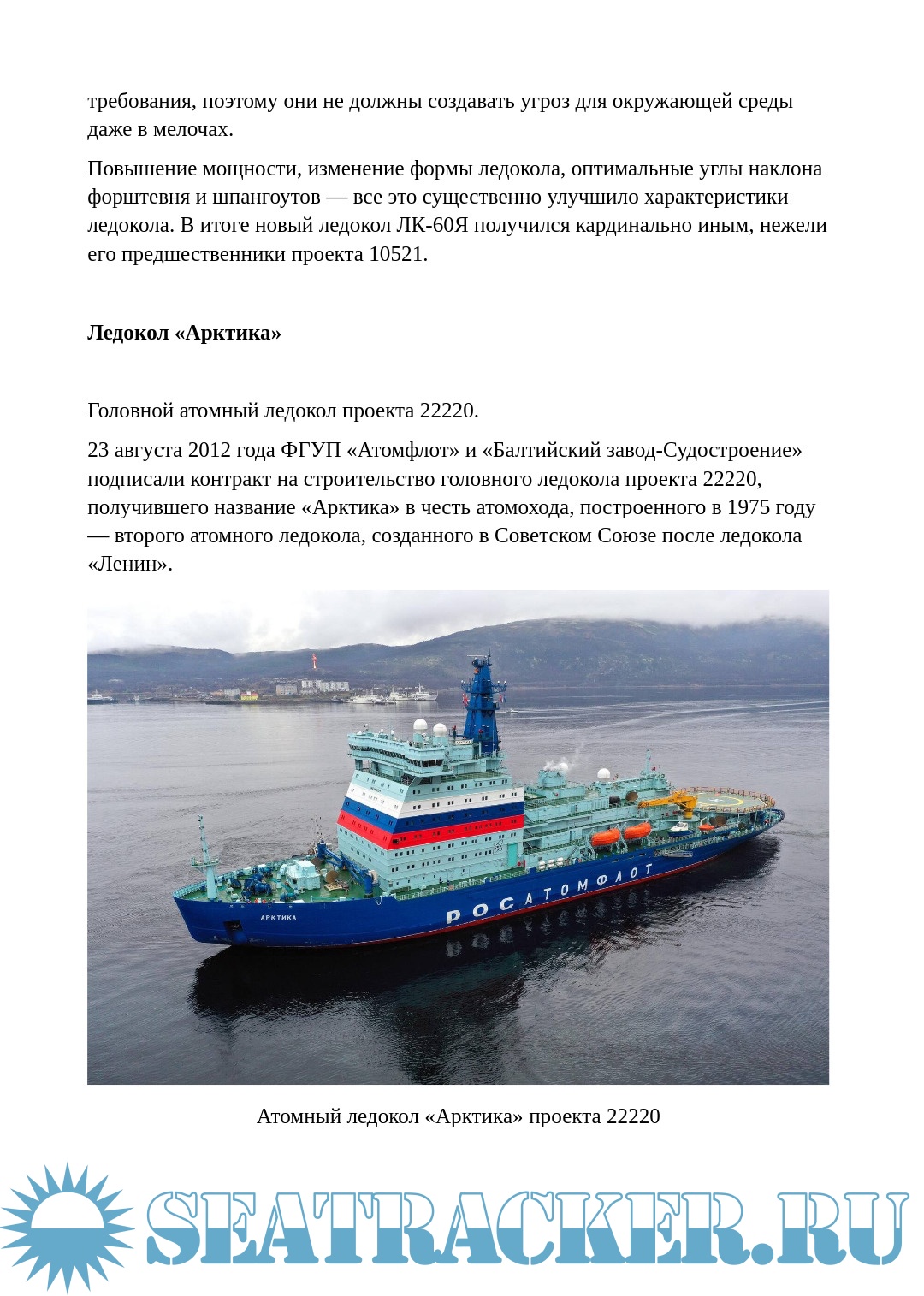 Приведены характеристики и история строительства всех отечественных атомных ледоколов, включая атомный лихтеровоз «Севморпуть».