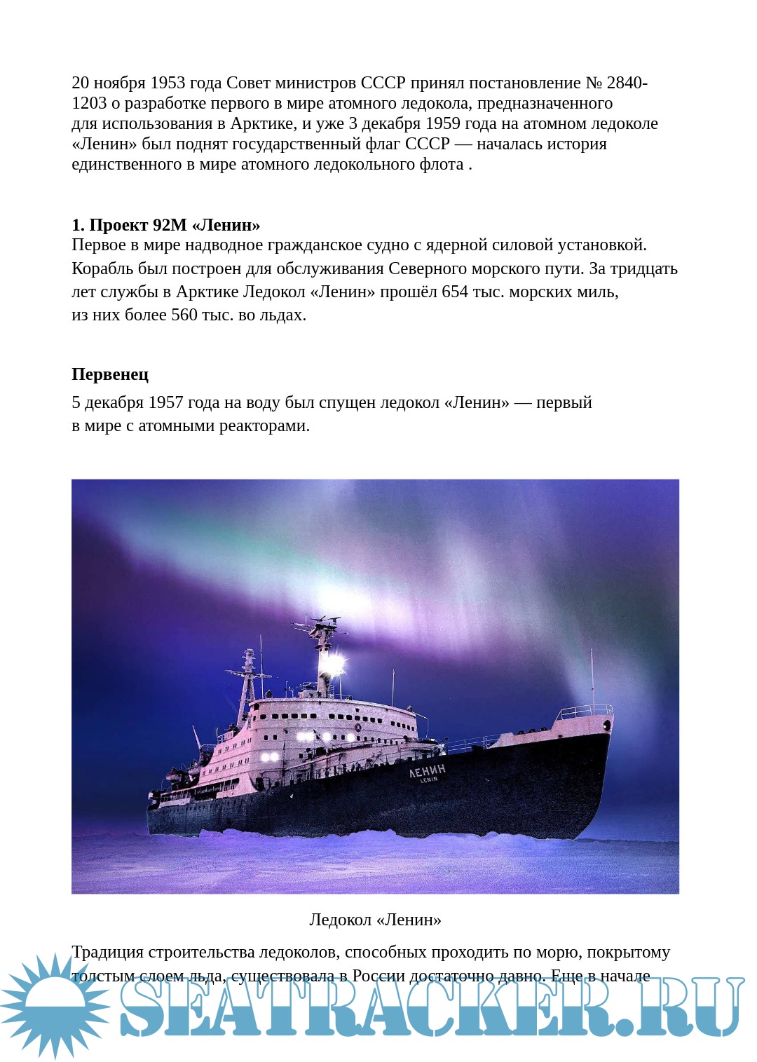 Описание: 20 ноября 1953 года Совет министров СССР принял постановление № 2840-1203 о разработке первого в мире атомного ледокола, предназначенного для использования в Арктике, и уже 3 декабря 1959 года на атомном ледоколе