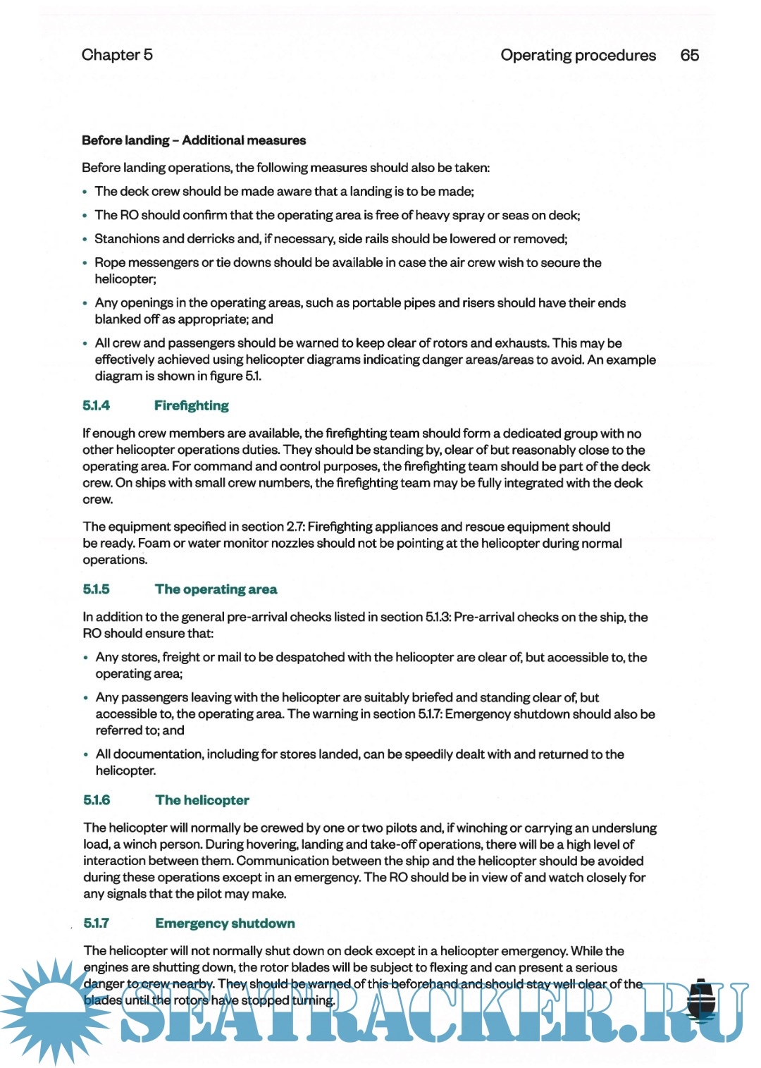 Its purpose remains the same: to encourage safe and efficient helicopter/ship operations. While this Guide is intended mainly for the use of ships' masters, officers and crew, it also offers advice to helicopter pilots and operators. The objective is to promote standardised procedures and shipboard facilities for helicopter/ship operations worldwide.