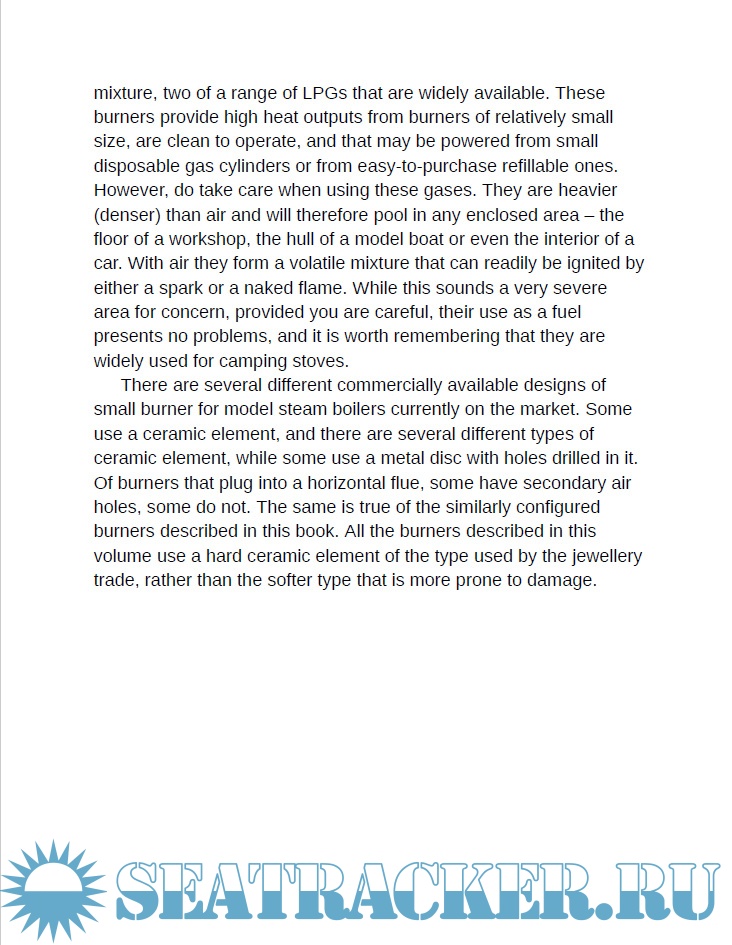 Description: This book covers the materials needed to make ceramic burners and explains how to silver solder them. It discusses LPG and holding tanks, as well as connecting pipework and electronic and mechanical automatic gas-control systems to monitor the boiler pressure. In addition, there is advice on how to set up, install and operate each burner to provide optimum heating to the boiler. A summary of the Boiler Test Code Volume 3 that applies to home-made gas tanks is included, together with a list of useful suppliers with their contact details. This book provides all the information you need to build and operate: three burners, with one variant, for boilers with 42mm, 35mm and 28mm horizontal flues; two round burners for vertical boilers with fire boxes; two different sizes of rectangular burner, with one variant, for use in horizontal water-tube or pot boilers and finally, one small round and one tiny oblong burner for use in Mamod and Wilesco boilers. The burners described are straightforward to make and simple to use to heat the water in boilers that meet the 3 bar litre limit in the UK Boiler Test Code.
