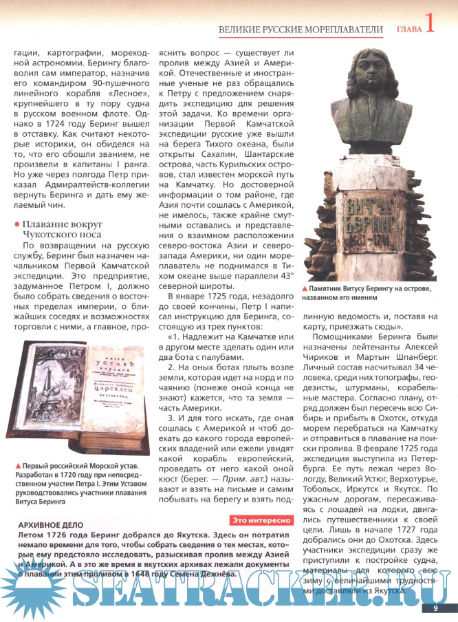 Северной Америки, пролива, разделяющего Америку и Евразию, исследование Командорских, Алеутских, Курильских островов, Новой Земли и побережья Северного
