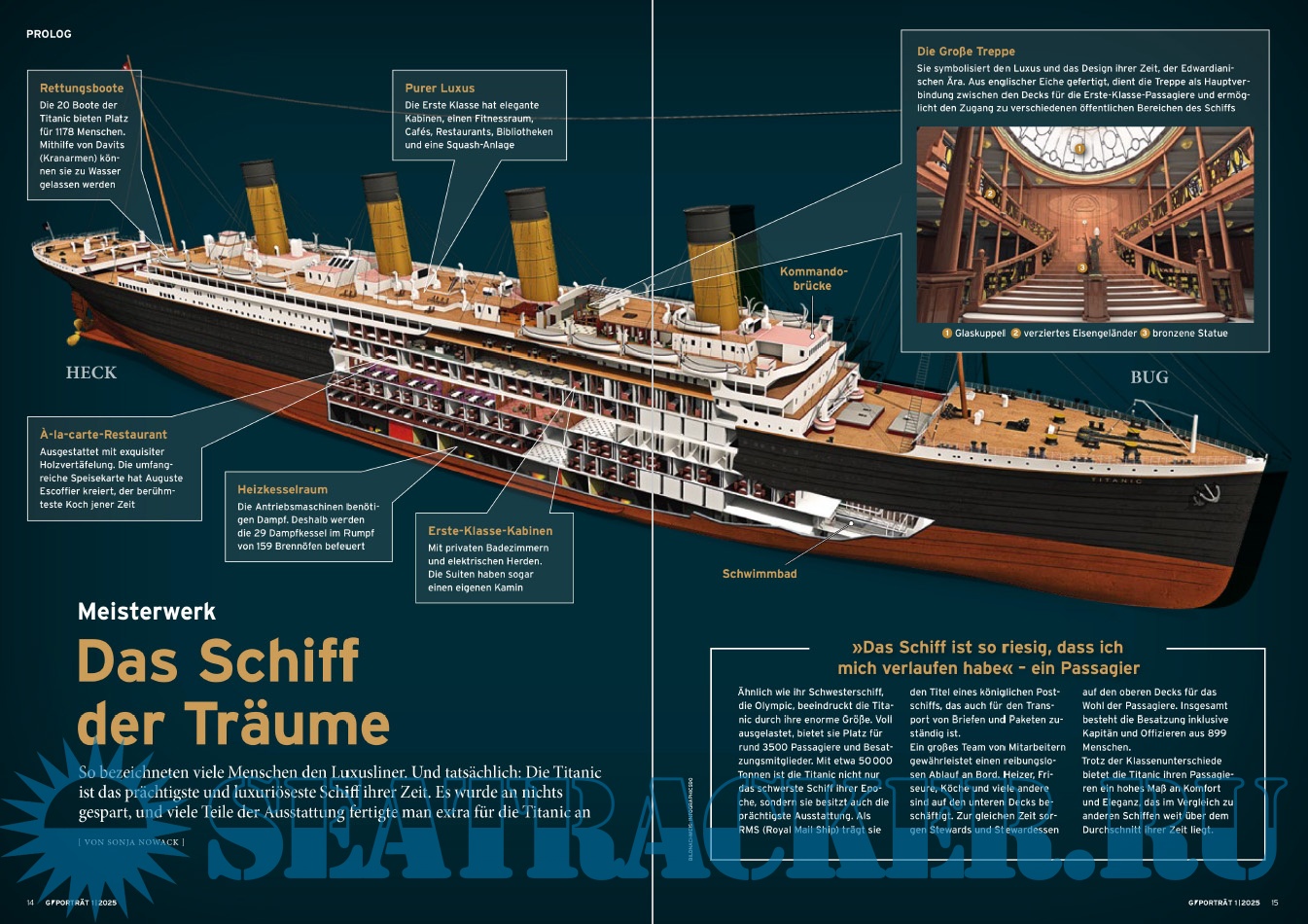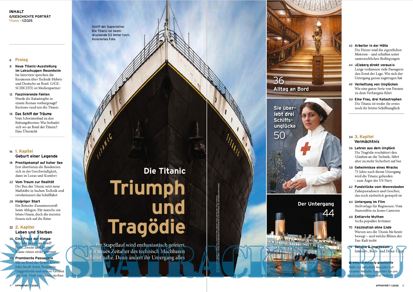 Year: 2025 Language: German Author: G/GESCHICHTE Genre: Historical, Periodical publication Edition: G-Geschichte Portrat 2025 Fruhjahr Format: PDF Quality: eBook Pages count: 76 Description: Neue Titanic-Ausstellung im Lokschuppen Rosenheim Im Interview sprechen die Kuratoren über Technik-Hybris und Deutsche an Bord. G/GESCHICHTE ist Medienpartner