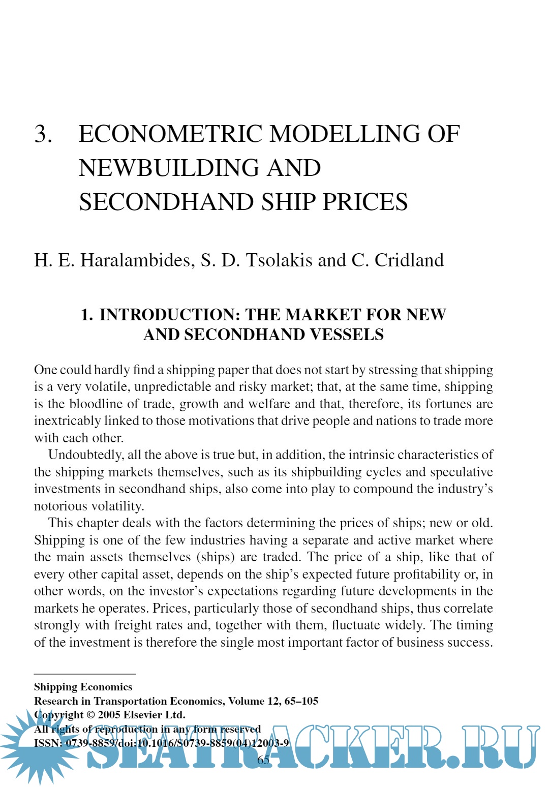 Year: 2005 Language: English Author: Cullinane, Kevin Publisher: Elsevier ISBN: 0-7623-1177-0 Format: PDF Quality: eBook Pages count: 325 Description: In order to fully comprehend the scope of this volume in the Research in Transportation Economics series, it is important to recognise a distinction between Shipping Economics and Port Economics.While the area covered by the discipline of Port Economics may appear to be intuitively obvious, the scope of what is entailed within Shipping Economics is rather more difficult to define. As can be seen in the content of the chapters in this volume, the coverage of the latter is extremely eclectic and, in common with the area of Port Economics, draws upon many concepts, theories and methods that are ubiquitously applied in other branches of economics. Together, they may be considered to comprise Maritime Economics. As with many taxonomies that are developed and utilized within the social sciences, on most occasions it is very clear what specific issue may be termed Shipping Economics and what Port Economics. However, on some occasions, the distinction may not be absolutely categorical. Many issues of relevance to the port industry simply cannot be analysed without taking into account the economic behaviour of their main customer, the shipping industry. Similarly, it is easy to visualize areas of concern to the shipping industry that are significantly affected by the economic behaviour of one of their main service suppliers, the port industry. Thus, at the interface between Shipping Economics and Port Economics, there exists a grey area where one “discipline” may impinge on the territory of the other.