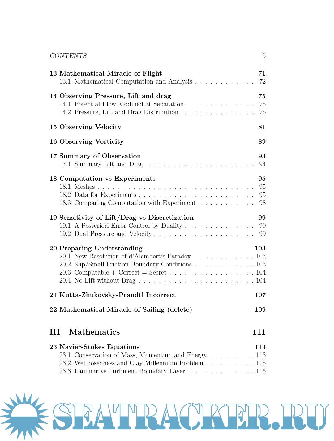Year: 2014 Language: English Author: Johnson C. Genre: Technical literature Format: PDF Quality: eBook Pages count: 179 Description: Northern California has a storied, 500-year history of sailing. But despite this rich heritage, scientists and boat designers continue to learn more each day about what makes a sail boat move. Contrary to what you might expect, the physics of sailing still present some mysteries to modern sailors. (The Physics of Sailing [?]) In this book we present a mathematical theory of sailing based on a combination of analysis and computation.