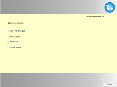 Описание: Данный тест создается для моряков, которые говорят на русском языке. В тесте заложены возможности, как обучения, так и тестирования.
