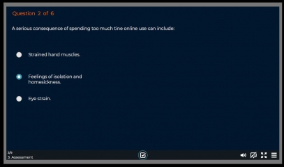 The test covers basic questions related to cyber wellness. The questions are simple and straightforward, aimed at introducing the fundamentals of safety and maintaining digital health online. The test was completed with a score of 100%.