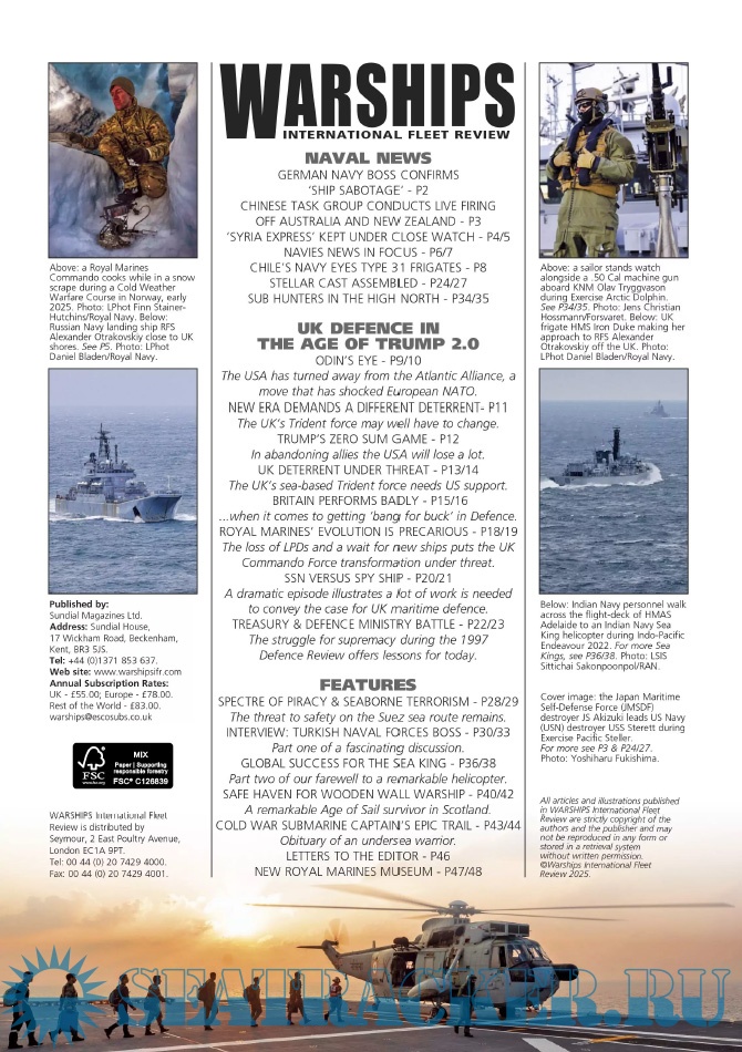 Year: 2025 Language: English Author: Iain Ballantyne (Editor) Genre: Periodical publication Edition: 2025-04 Format: PDF Quality: eBook Pages count: 52 Description: Warships IFR puts the spotlight on the latest developments in the world’s navies. It covers current defence issues and has comments by leading analysts. The magazine regularly includes features on the Royal Navy and the US Navy in addition to incorporating news and features on all other navies across the globe. Warships IFR frequently carries in-depth articles on naval heritage.WARSHIPS International Fleet Review is published 12 times a year by Tandy Media Ltd who also publish Shipping Today & Yesterday (which provides news and features from the world of merchant shipping).