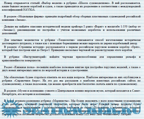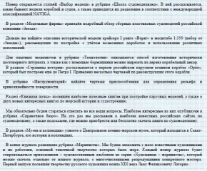 Описание: Первый номер нового судомодельного журнала на русском языке. Журнал ориентирован на все категории судомоделистов: от начинающих до опытных. Журнал выходит в электронном формате со свободным бесплатным распространением.
