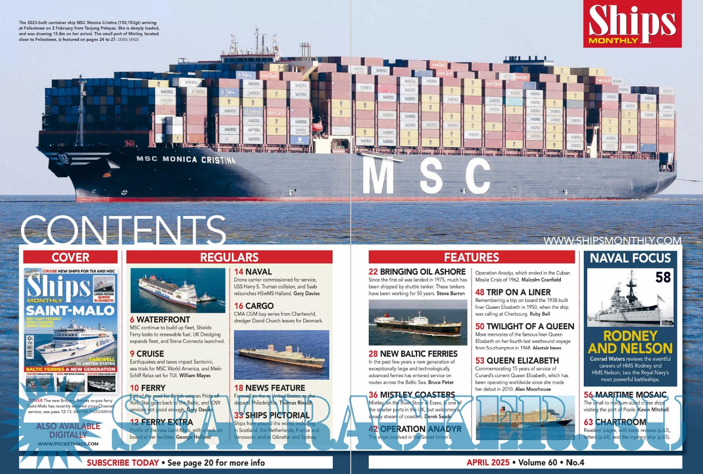 Year: 2025 Language: English Author: Editor: Nicholas Leach Genre: Periodical publication Edition: 2025-04 Format: PDF Quality: eBook Pages count: 68 Description: Ships Monthly is the world's leading international shipping magazine. Ships Monthly provides news and features for ship enthusiasts and maritime professionals, including reports on the ferry, cruise, new building and cargo ship scene as well as navies across the world.The latest issue of Ships Monthly is out now, and is packed with all the usual news and features, including outstanding articles and features.