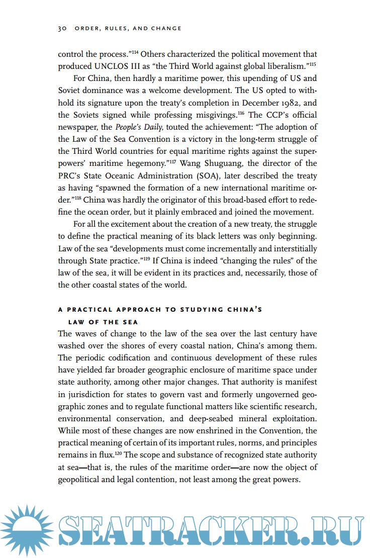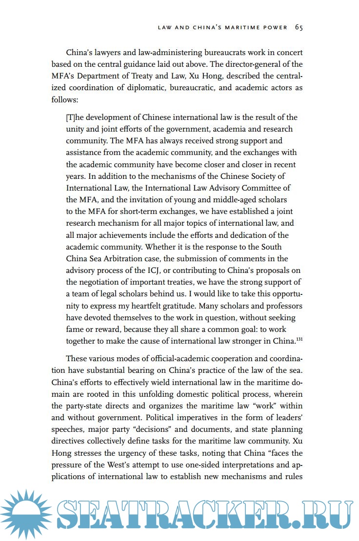 Conflicts over specific rules lie at the heart of the disputes, which are about much more than sovereignty over islands and rocks in the South and East China Seas. Instead, the main contests concern the strategic maritime space associated with those islands. To consolidate control over this vital maritime space, China's leaders have begun to implement "China's law of the sea": building domestic legal institutions, bureaucratic organizations, and a naval and maritime law enforcement apparatus to establish China's preferred maritime rules on the water and in the diplomatic arena.