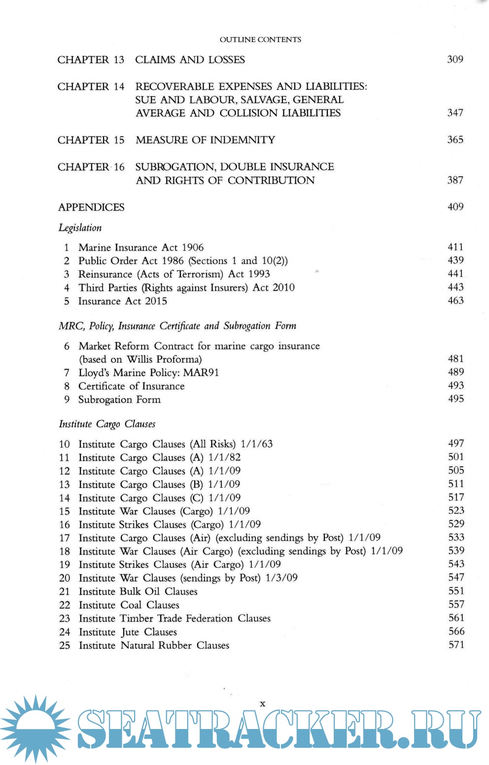Year: 2016 Language: English Author: John Dunt Publisher: Routledge Edition: 2nd ISBN: 978-0-367-73750-4 Format: PDF Quality: Scanned pages Pages count: 676 Description: The new edition of this British Insurance Law Association (BILA)-award-winning text is the definitive reference source for marine cargo insurance law. Written by an author who was closely involved with the revisions to the Institute Cargo Clauses 2009, the work expertly examines marine cargo insurance by reference to important English and foreign legal cases as well as the Marine Insurance Act 1906. Logically arranged to reflect the structure of the Institute Cargo Clauses, the most widely used standard form of cover, this text offers easy to find solutions for today's busy practitioner. New to this edition: Completely revised to include the Insurance Act 2015 (duty of fair presentation; warranties, fraudulent claims) Brand new chapter on the revised Institute Ancillary and Trade Clauses, including those to be introduced on 1 November 2015 Increased coverage of jurisdiction and choice of law, particularly taking into account the Rome I Regulation Enhanced coverage of the issue of Constructive Total Loss Consideration of the Law Reform Commission's proposals for the reform of insurance law, and further amendments to the Marine Insurance Act 1906. Covers the latest developments in the Enterprise Bill for damages for late payment of claims Fully updated with all of the influential cases since 2009, including: The Cendor MOPU, one of the most important marine insurance cases of the last 50 years. Clothing Management v Beazley Solutions Notable hull cases such as Versloot Dredging v HDI Gerling on fraudulent devices Influential foreign cases taken from this book's sister text, International Cargo Insurance This unique text is a one-stop resource for marine insurance lawyers handling cargo claims, and will also be of interest to students and researchers of maritime law. Additional info: This is an update for the former release on this site.