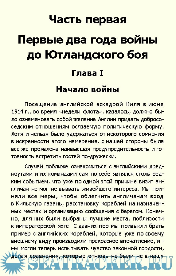 Описание: Книга германского адмирала Рейнхарда Шеера (1863—1928) рассказывает об операциях военно-морских сил Германии в Первую мировую войну. С начала войны Шеер командовал соединением линейных кораблей, а в январе 1916 года был назначен командующим Флотом открытого моря. В мае того же года, в Ютландском сражении — крупнейшей морской битве Первой мировой войны между немецким и британским флотами, командовал германскими силами. Позже Шеер становится сторонником стратегии неограниченной подводной войны. Написанная вскоре после окончания войны, книга отражает немецкую точку зрения на ход и итоги морского противостояния Британии и Германии.