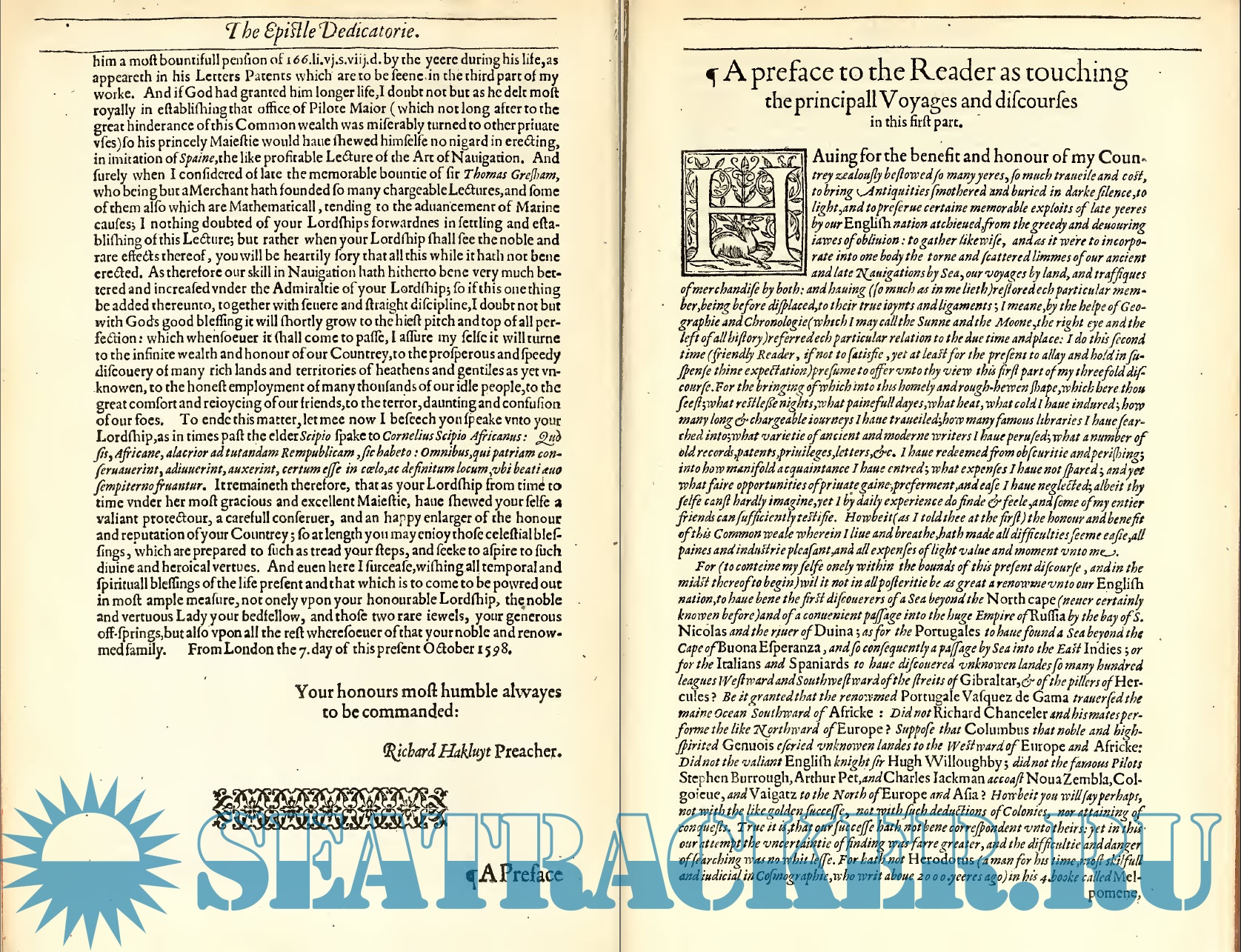 The principal navigations, voyages, traffiques and discoveries of the English nation, made by sea or ouer-land to the remote and farthest distant quarters of the earth, at any time within the compasse of these 1600 years (vol. 1)