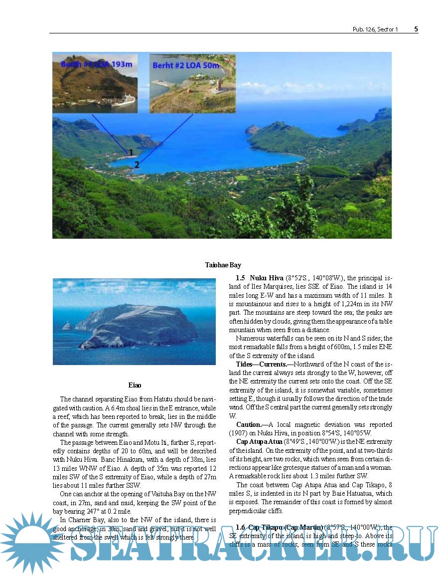 Year: 2025 Language: English Author: National Geospatial Intelligence Agency Genre: Documentation Edition: 13th Format: PDF Quality: eBook Pages count: 363 Description: Pub. 126, Sailing Directions (Enroute) for Pacific Islands, Thirteenth Edition, 2024, is issued for use in conjunction with Pub. 120, Sailing Directions (Planning Guide) Pacific Ocean and Southeast Asia. Companion volumes are Pubs. 125 and 127. Digital Nautical Charts 6, 12, and 13 provide electronic chart coverage for the area covered by this publication. Electronic Nautical Charts Regions G, H, and T1 provide electronic chart coverage for the area covered by this publication. This publication has been corrected to 4 January 2025.