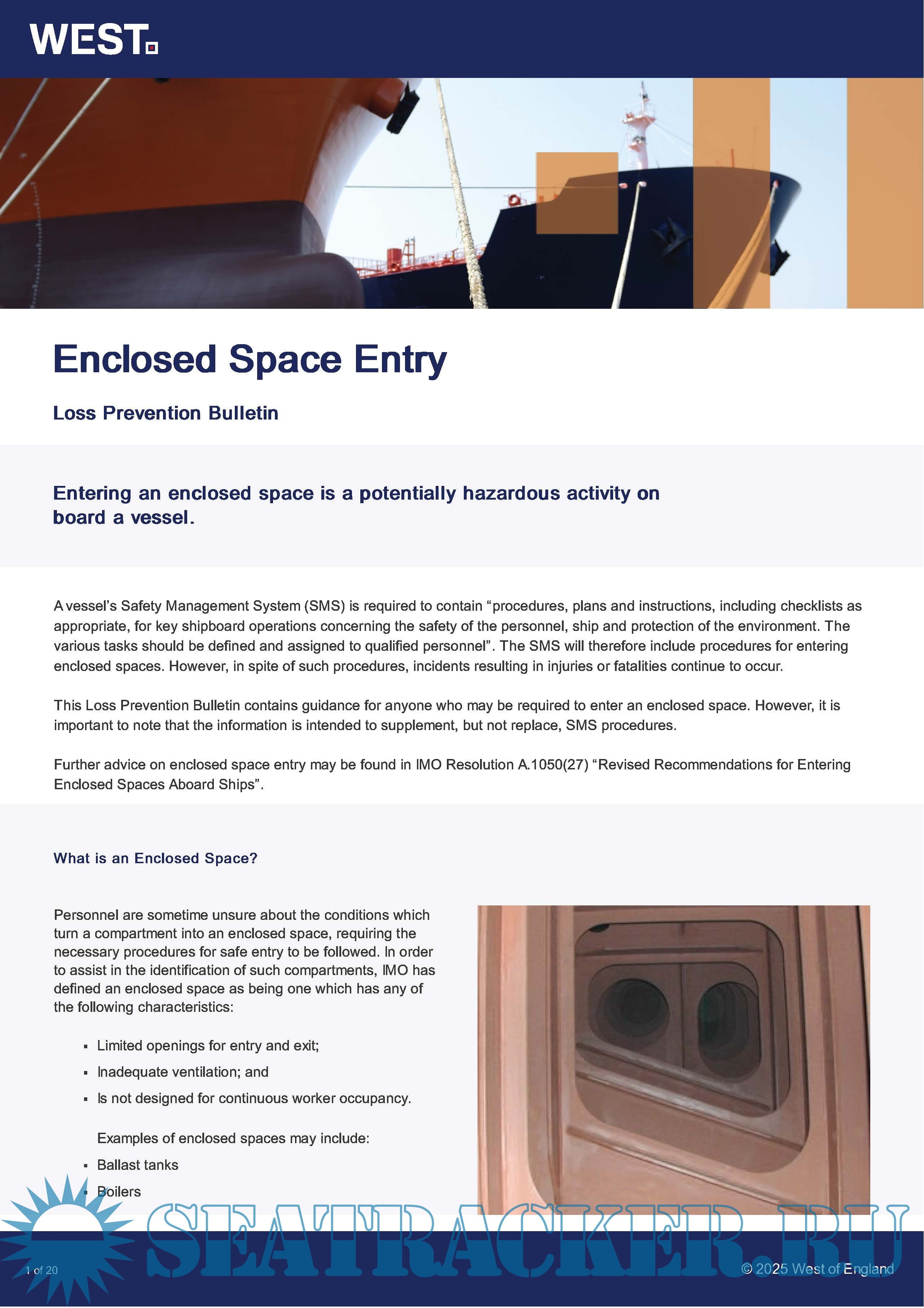 This Loss Prevention Bulletin contains guidance for anyone who may be required to enter an enclosed space. However, it is