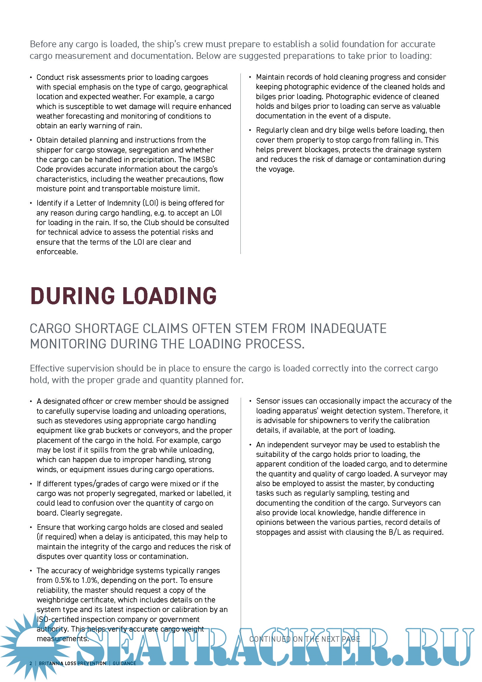1. Preventing Bulk Cargo Shortage claims Guidance2. Dry Bulk Cargo Carriage Checklist