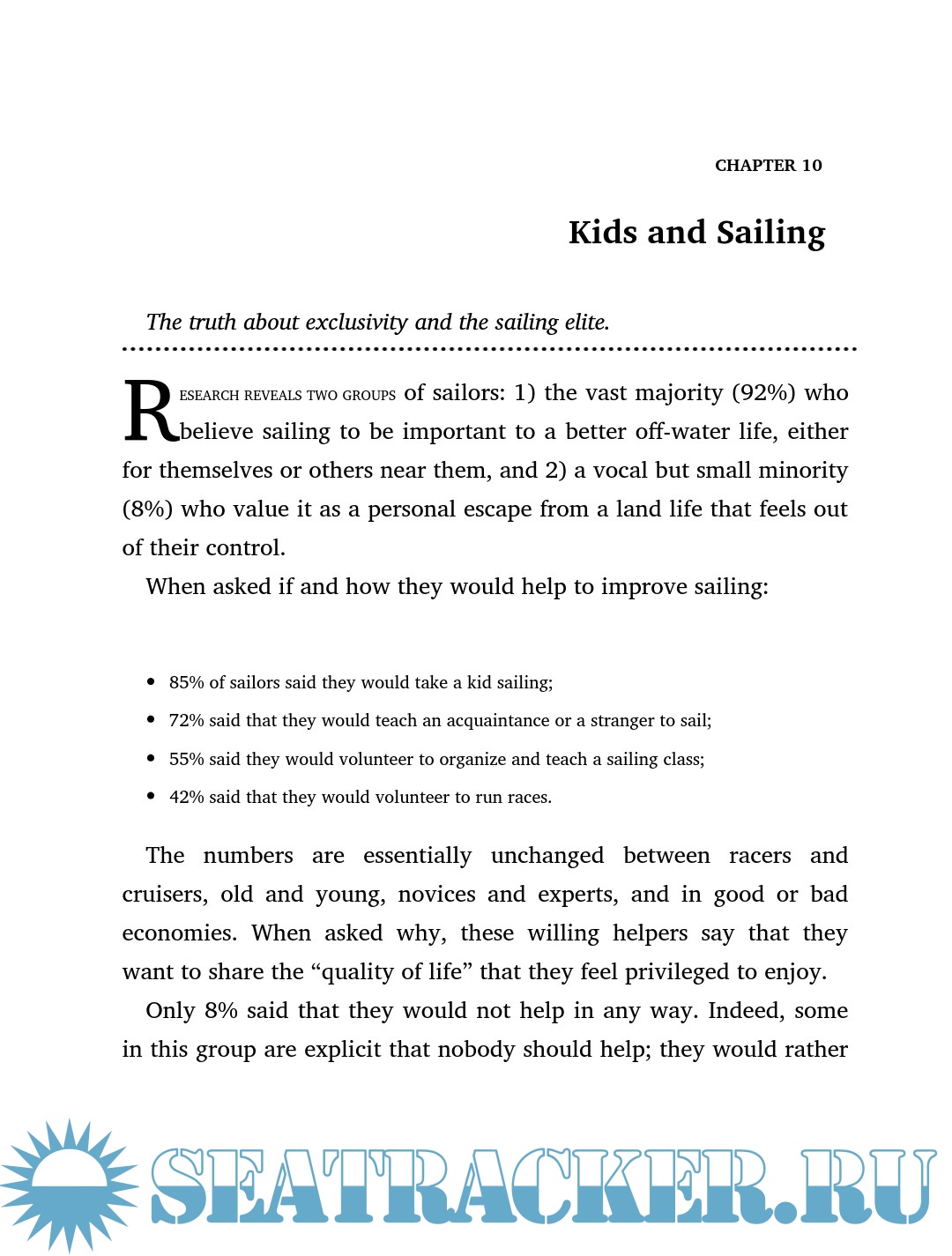 Nick Hayes is a market researcher and partner at the consulting firm FiveTwelve Group, and is active in the Milwaukee sailing scene. He has studied sailing, sailors, and sailing clubs for years, and interviewed over 1,200 sailors worldwide since 2003 for this book. He lives in Milwaukee, Wisconsin.