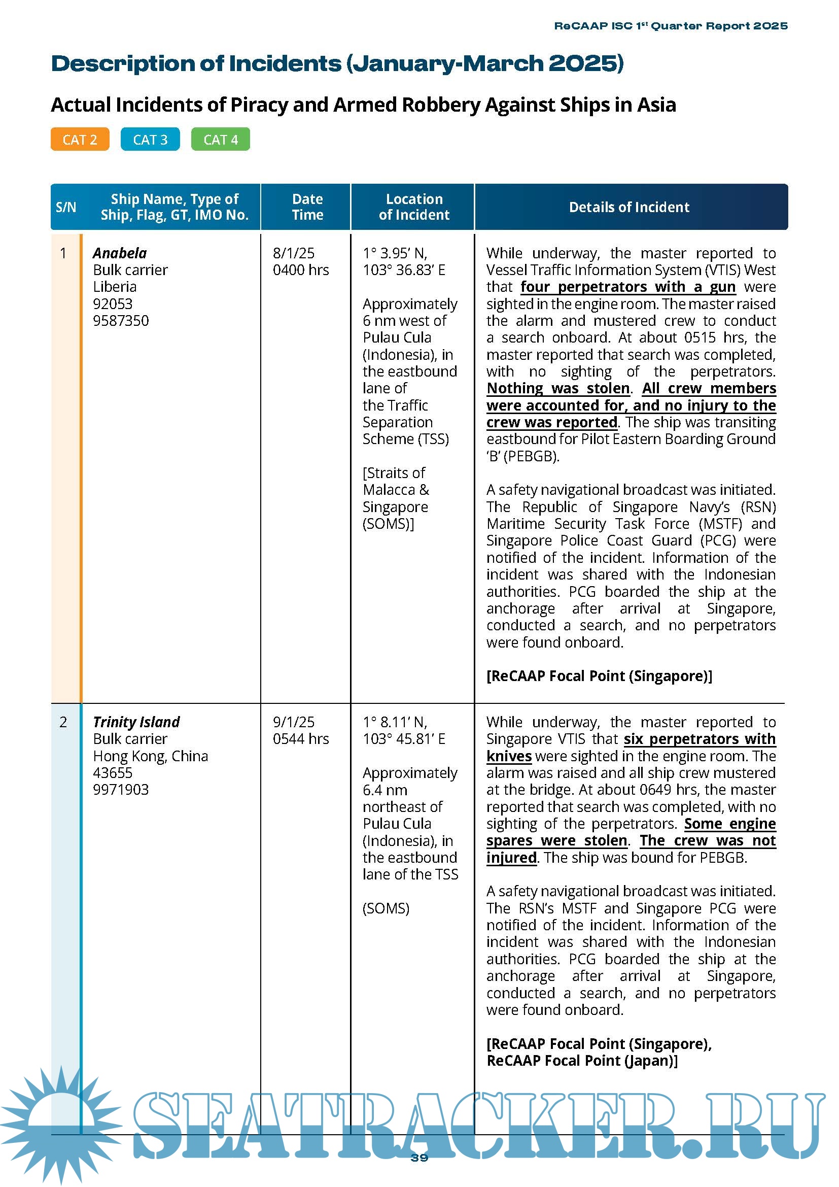 ReCAAP ISC 3rd Quarter Report | Piracy and Armed robbery against ships in Asia - ReCAAP [2025, PDF]
