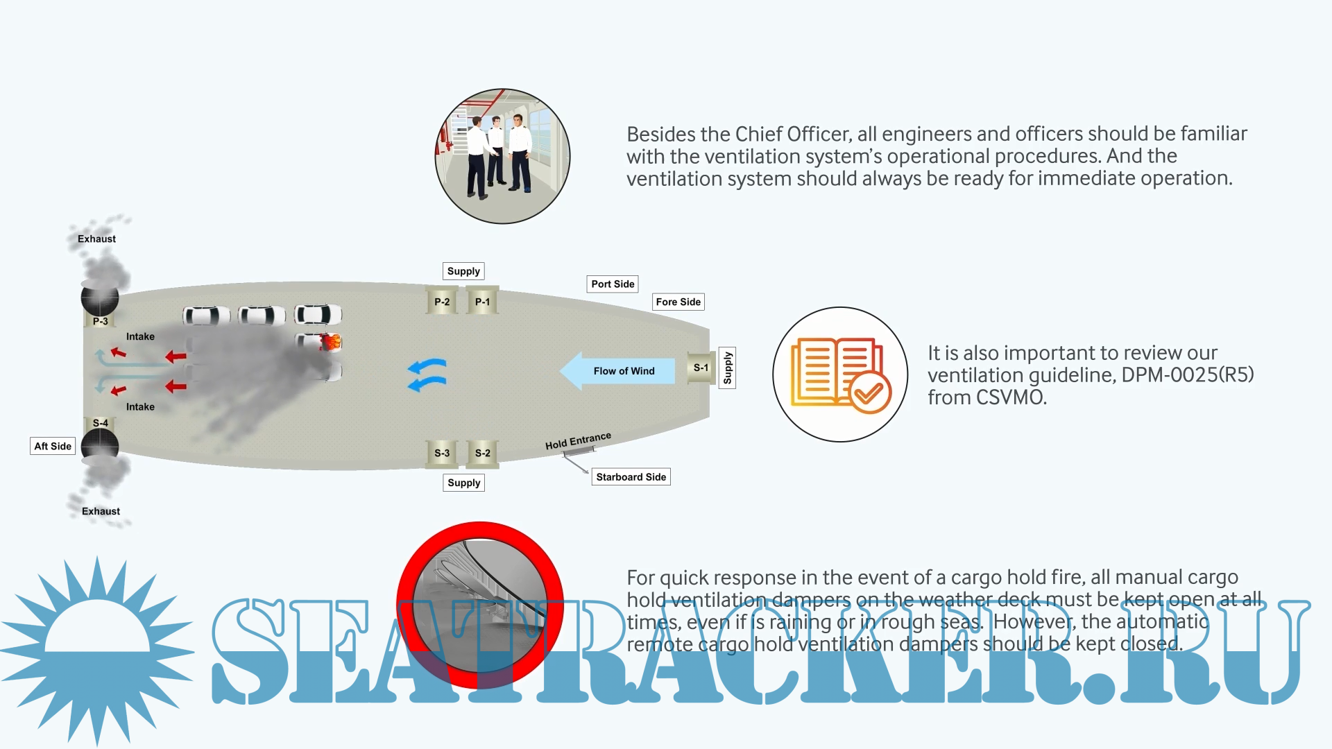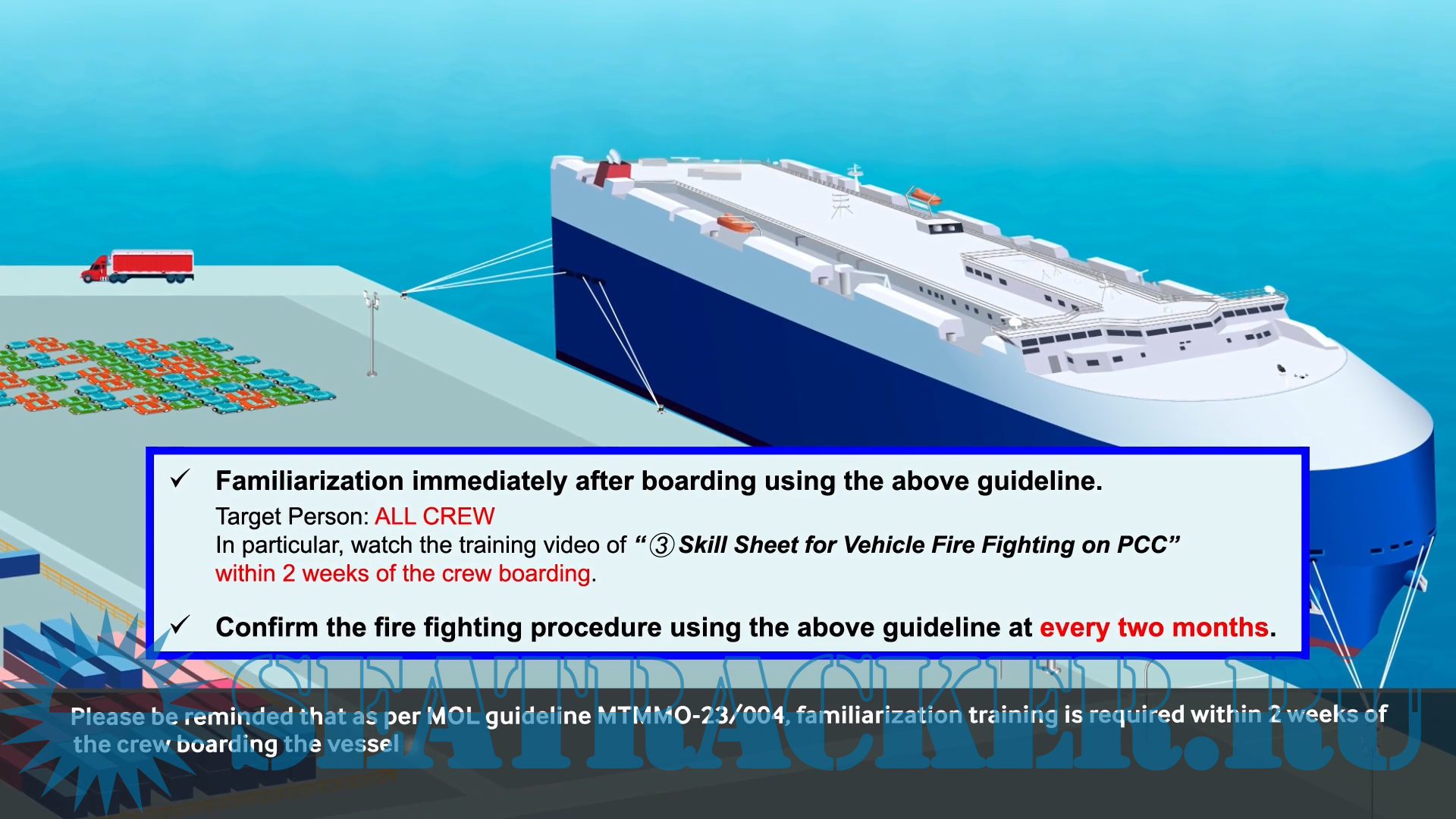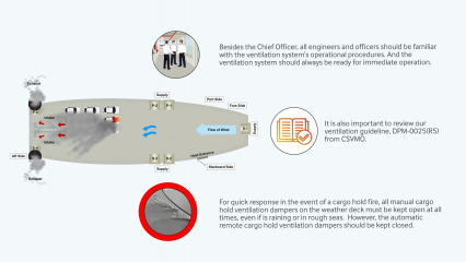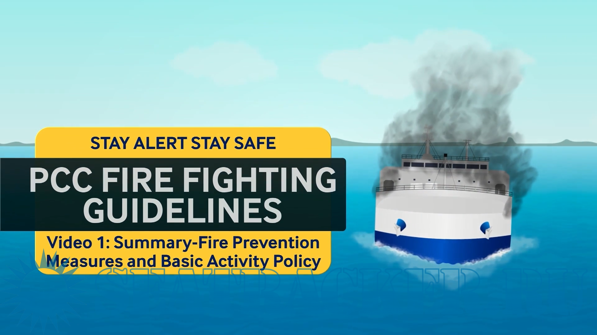 Description: The "PCC Firefighting Guidelines" video series provides comprehensive guidance on fire prevention measures, basic activity policy, and firefighting procedures in PCC cargo holds. The videos emphasize the importance of initial firefighting with water within the first 14 minutes of fire detection and the critical role of first responders in ensuring crew safety and minimizing fire spread. Part # 1.