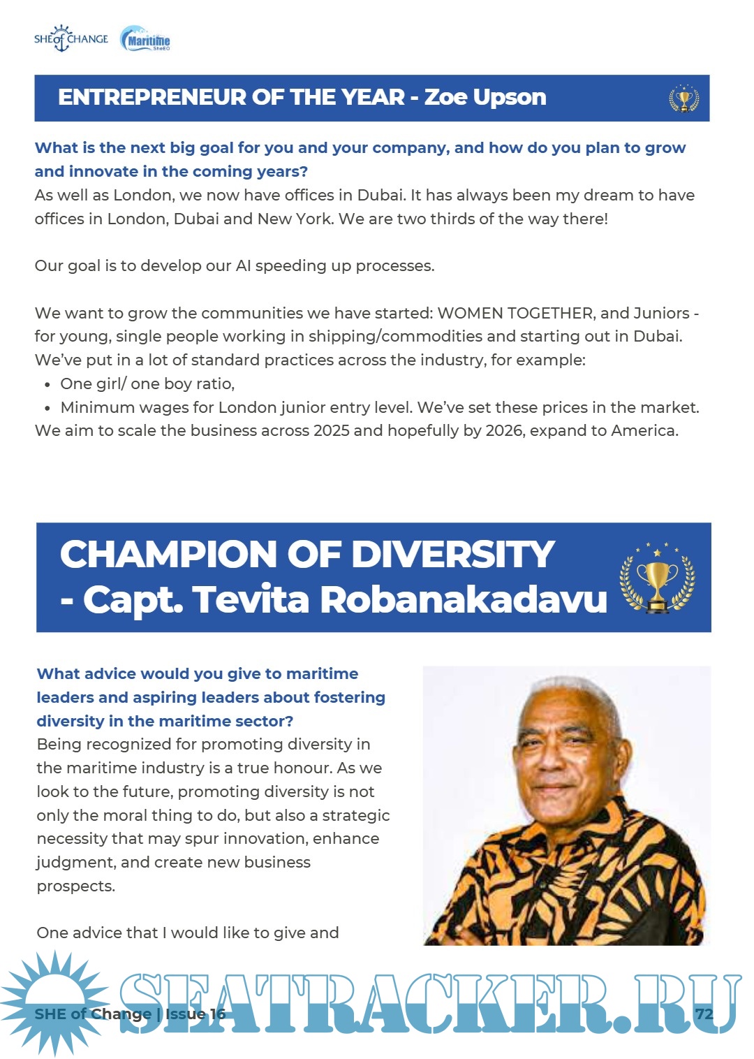 Interviews with winners of the Maritime SheEO Awards 2024 are included in this issue. The winners speak about their enthusiasm for the maritime sector and the driving forces behind their pursuit of excellence.