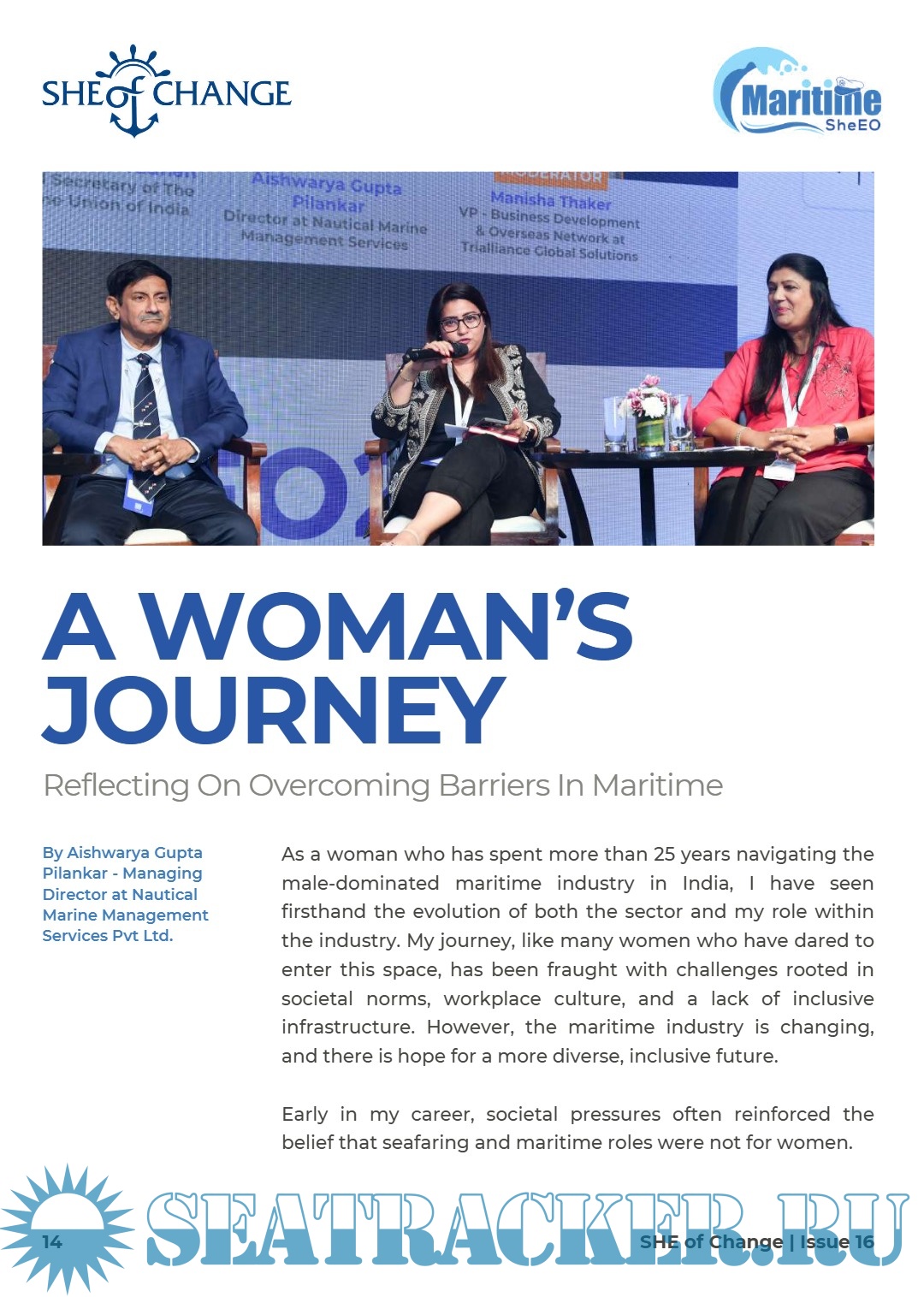 Year: 2025 Language: English Author: Maritime SheEO Genre: Magazine Edition: Issue 16 | March Format: PDF Quality: eBook Pages count: 82 Description: In this issue, we celebrate International Women’s Day by honouring women who have made remarkable contributions to the maritime industry. We highlight their inspiring stories and interviews, recognizing their achievements and commitment to surmounting challenges both at sea and on land as they continue to advance and excel in their respective fields. The cover page features one such extraordinary woman, Beatriz Castillo, who is transforming Panama's banking sector for a sustainable maritime future. I encourage you to take a moment to explore this enlightening and inspiring narrative. Moreover, we have showcased informative accounts from the Ceyline Group, Subsea 7, Transworld, and ODeX, illustrating their commitment to equity, inclusivity, and diversity in their workforce. Interviews with winners of the Maritime SheEO Awards 2024 are included in this issue. The winners speak about their enthusiasm for the maritime sector and the driving forces behind their pursuit of excellence. Additional info: About the Founder: Maritime SheEO is the brainchild of our founder Sanjam. An advocate for Diversity in the Maritime Industry, she is the “go to” person for gender issues in the Indian maritime industry as well as overseas. Passionate about driving change, she launched Maritime SheEO in August 2019.She has been working in the maritime industry since 2001 and is a Director of Sitara Shipping Ltd.A founder member of Women’s International Shipping and Trading Association (WISTA) India, she is also currently Exco member of WISTA International. She’s a member of the Executive Board of Directors of the World Maritime University based in Malmo, Sweden.