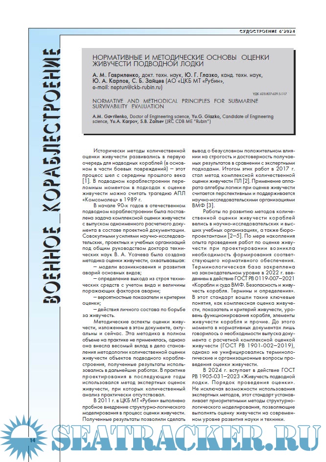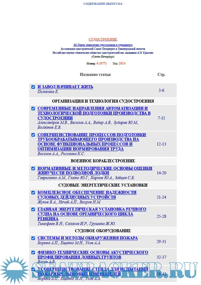 Журнал «Судостроение» 877 ноябрь-декабрь