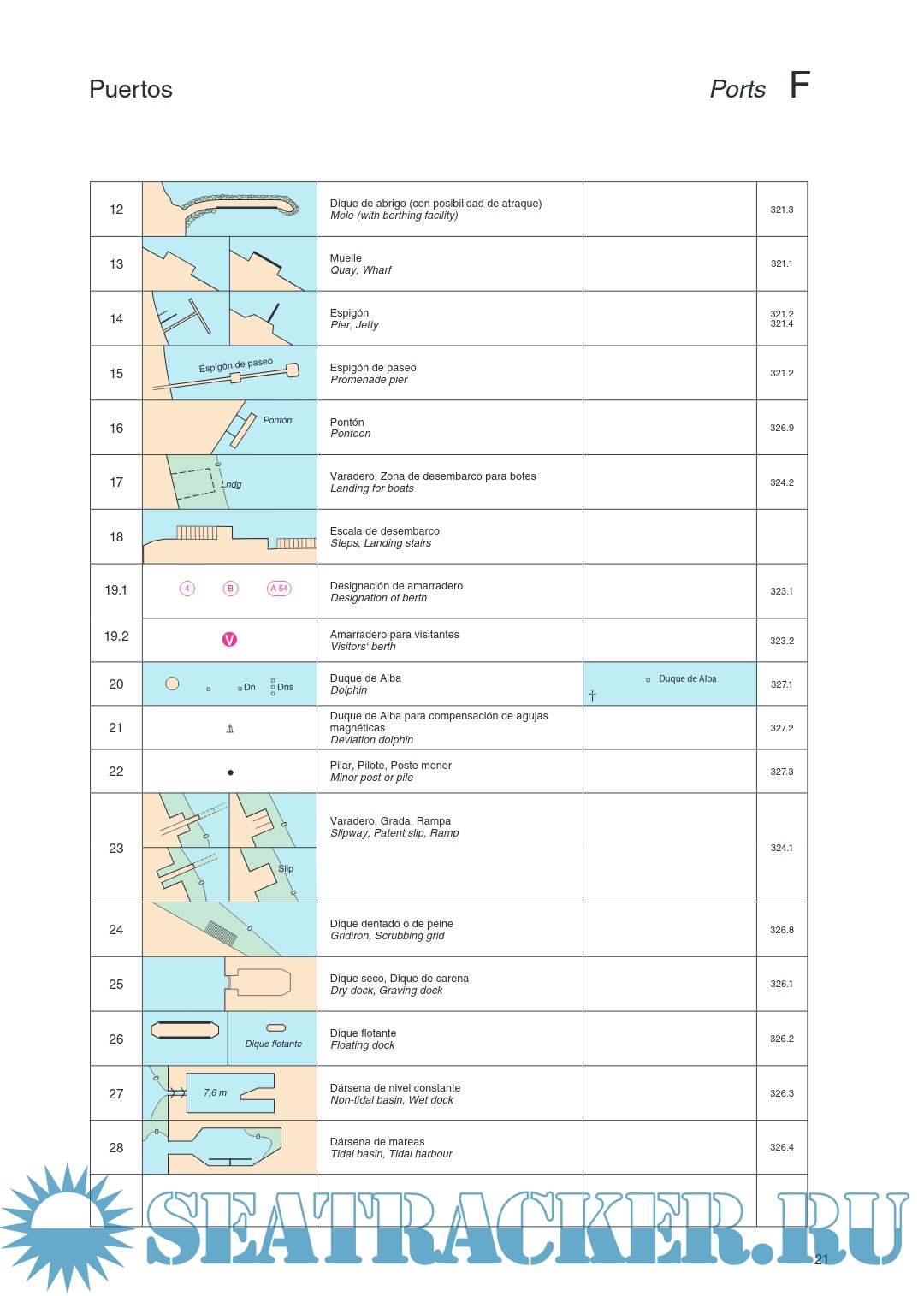 Year: 2011 Language: English, Spanish Author: Instituto Hidrográfico de la Marina Genre: Atlas Publisher: Instituto Hidrográfico de la Marina Format: PDF Quality: eBook Pages count: 104 Description: This edition of Symbols, Abbreviations and Terms used on charts is based upon the “Chart specifications of the IHO” (IHO: International Hydrographic Organization), which came into force at the XIIth International Hydrographic Conference 1982 in Monaco. This publication also shows number INT 1, as being the official publication of the IHO in Spanish language on this topic. This publication contains the complete symbols, abbreviations and terms used on paper charts published by Instituto Hidrográfico de la Marina (IHM). This ublication applies to printed charts. Symbols and abbreviations shown on navigational display systems using electronic charts may sometimes differ from those described in this document. All New Editions published by IHM are based upon international specifications. Charts based upon older specifications will be gradually replaced. In nautical documents in force, the numbers of the symbols and abbreviations referred in INT 1 may still be prefixed with the letter “I” for International (e.g. IK 28 instead of K28).