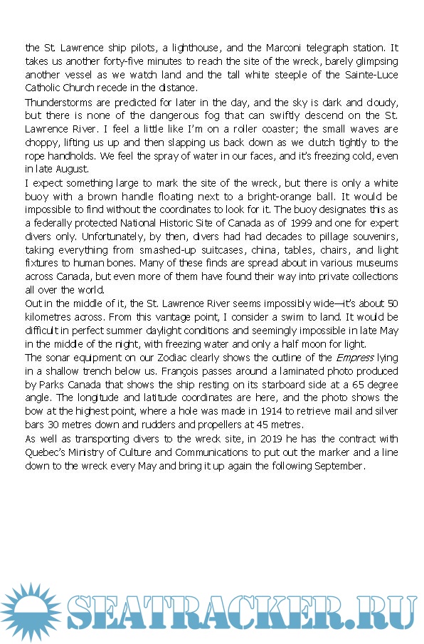 Investigative journalist and author Eve Lazarus draws on a trove of historical documents, including small-town newspaper reports, the Wreck Commissioner's Inquiry, and first-hand accounts passed down through personal letters and family lore, to tell the story of the wreck and its aftermath through the eyes of the survivors. Through these records, as well as interviews with experts and descendants of the passengers, Lazarus recounts the story from both a Canadian and a Norwegian perspective and investigates why many of the accounts regurgitated in newspapers and books for over a hundred years are wrong. The result is an absorbing and utterly stirring narrative that uncovers tales of heroism and sacrifice, human endurance, and modern-day shipwreck hunters.