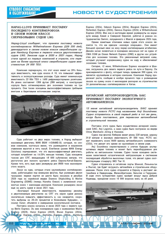 Судовое снабжение и обслуживание май-июнь 2022 - Батраков В.Ф. (главный редактор) [2022, PDF]