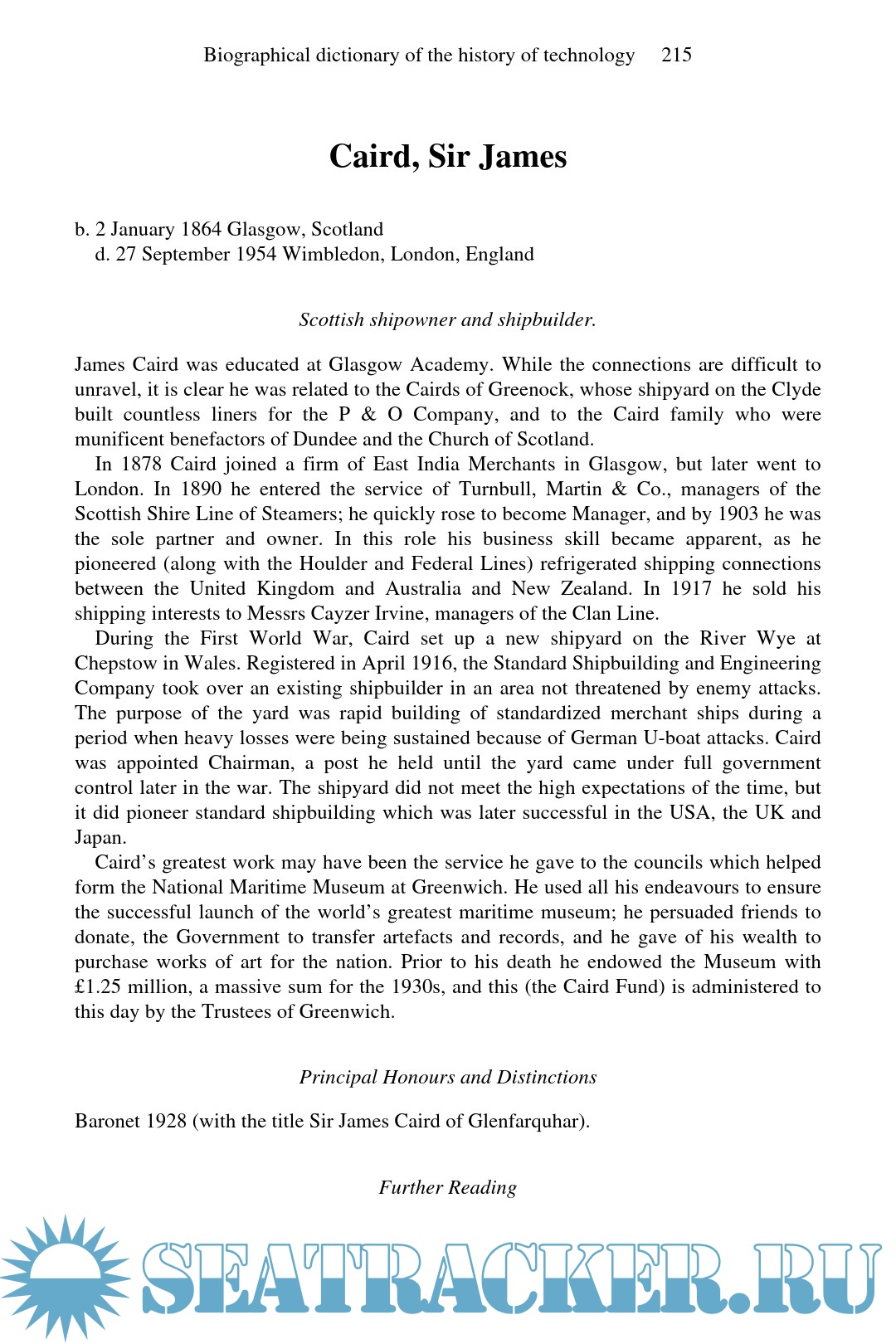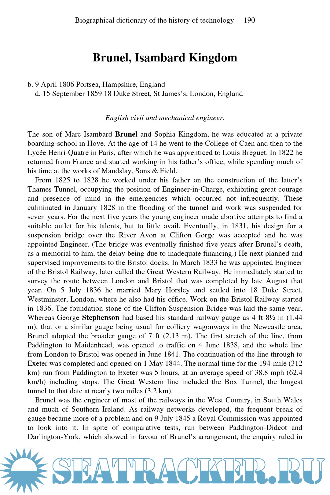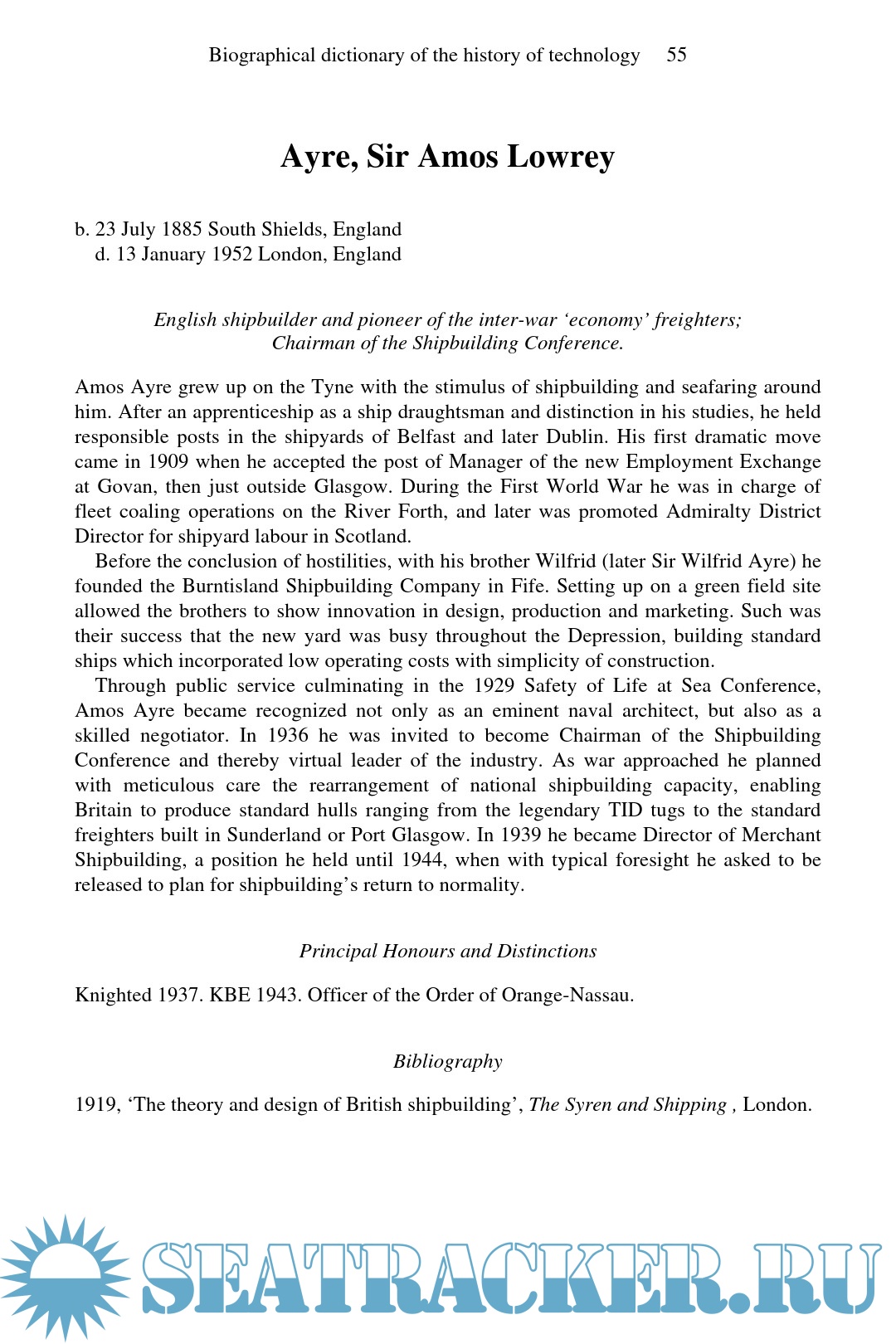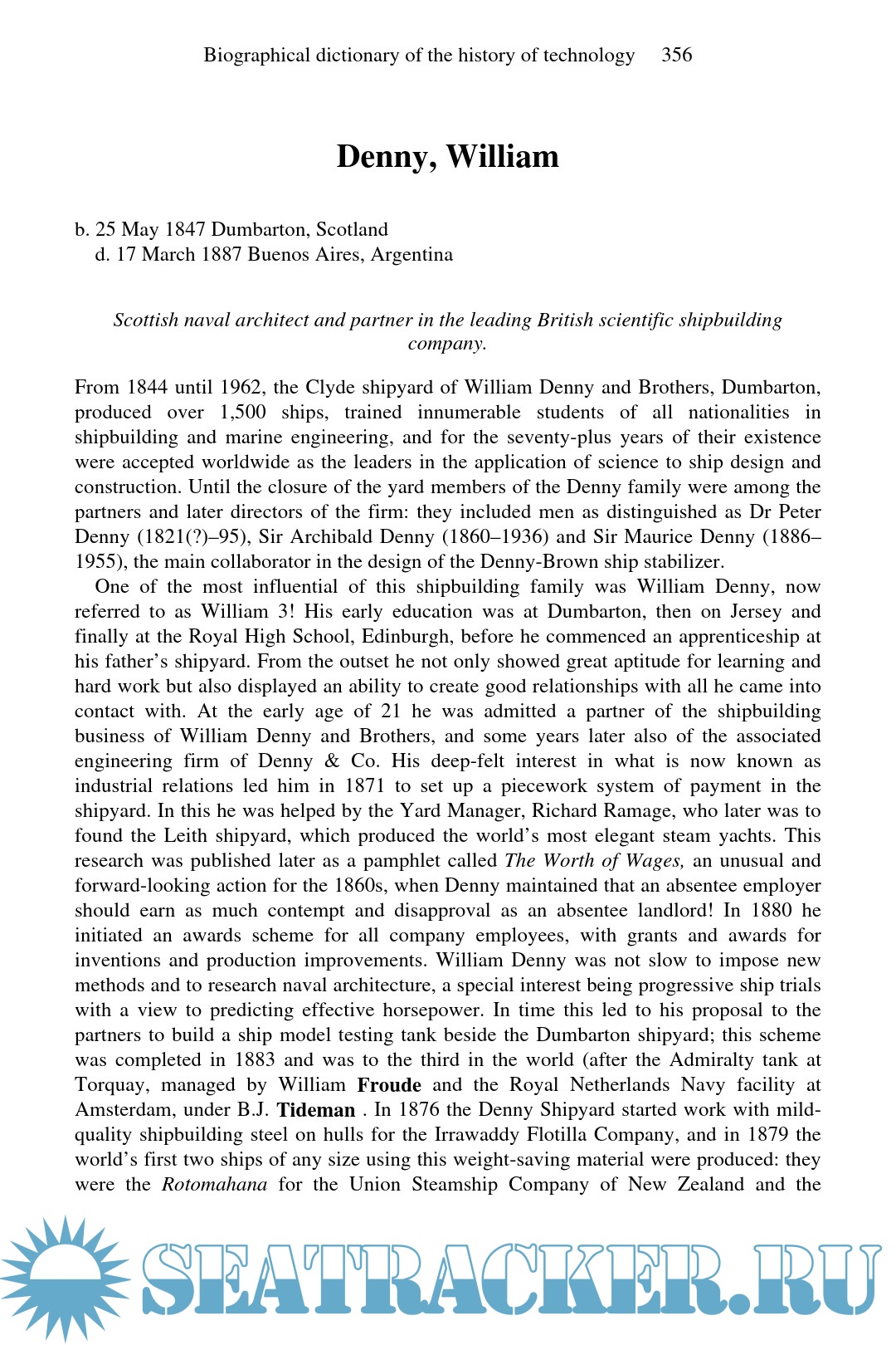 Day L., McNeil I. Biographical Dictionary of the History of Technology, 1988