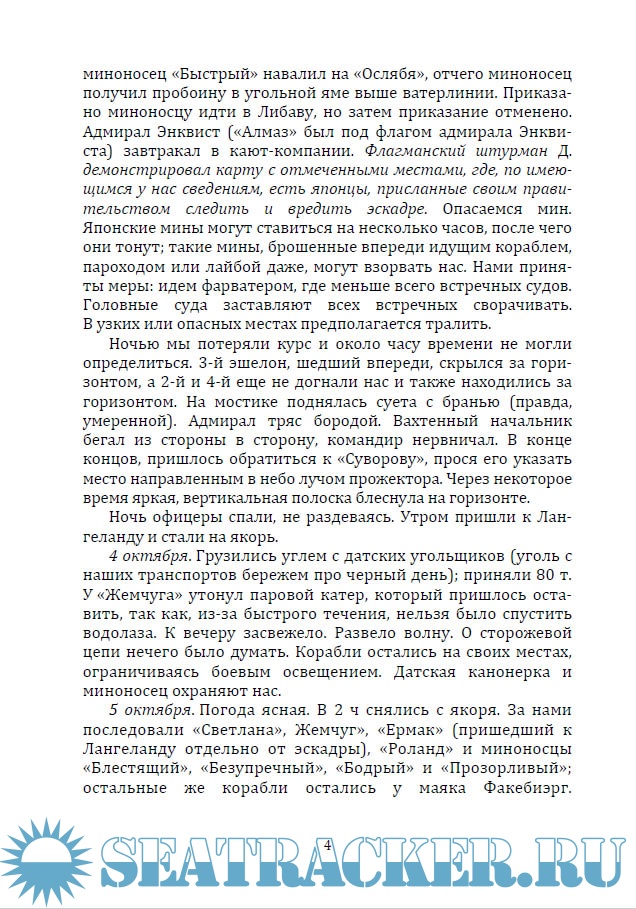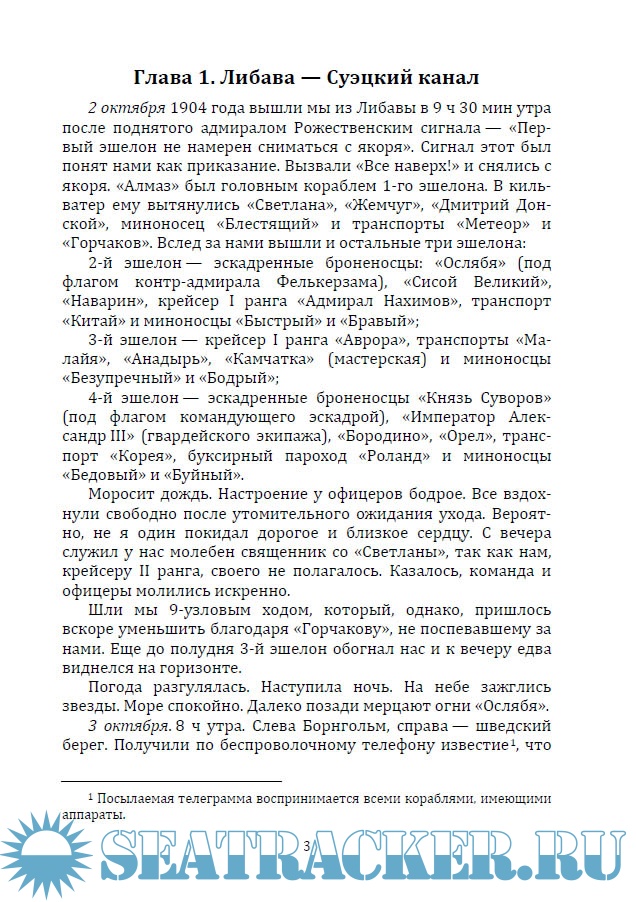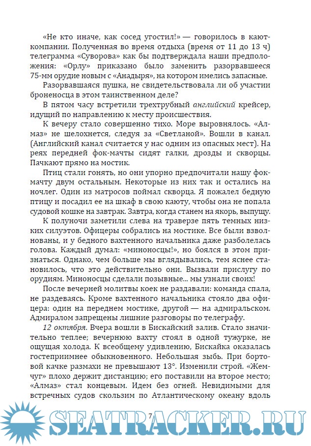 Текст печатается по изданию - “На “Алмазе”. От Либавы через Цусиму - во Владивосток”. М., 1910 - с незначительной литературной обработкой, касающейся, главным образом, неудачных и архаичных выражений, без нарушения смысловой нагрузки; для удобства чтения книга разбита на главы.