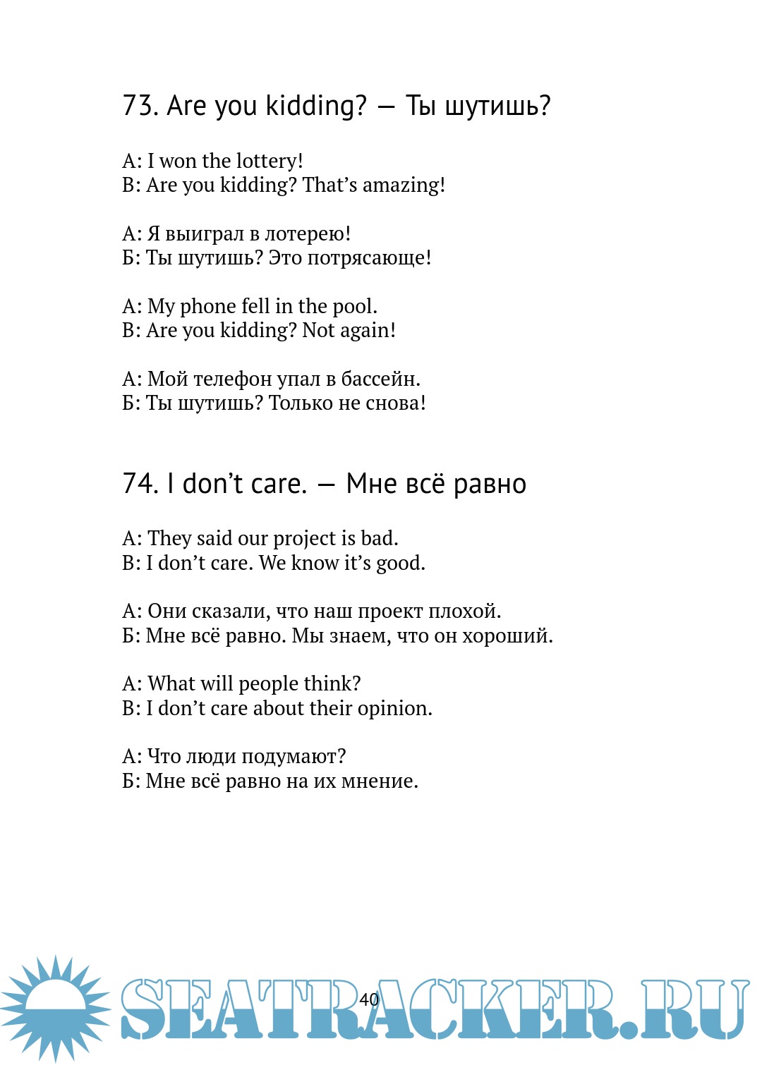 Описание: В книге собраны 100 самых популярных и полезных фраз, которые действительно пригодятся в реальной жизни: от простого «Спасибо» до вопросов вроде «Что ты делаешь?». Каждая фраза сопровождается короткими диалогами — они помогут понять, как и когда её использовать. Книга подойдет начинающим и тем, кто хочет освежить знания. Простые примеры, минимум грамматики — только практика!