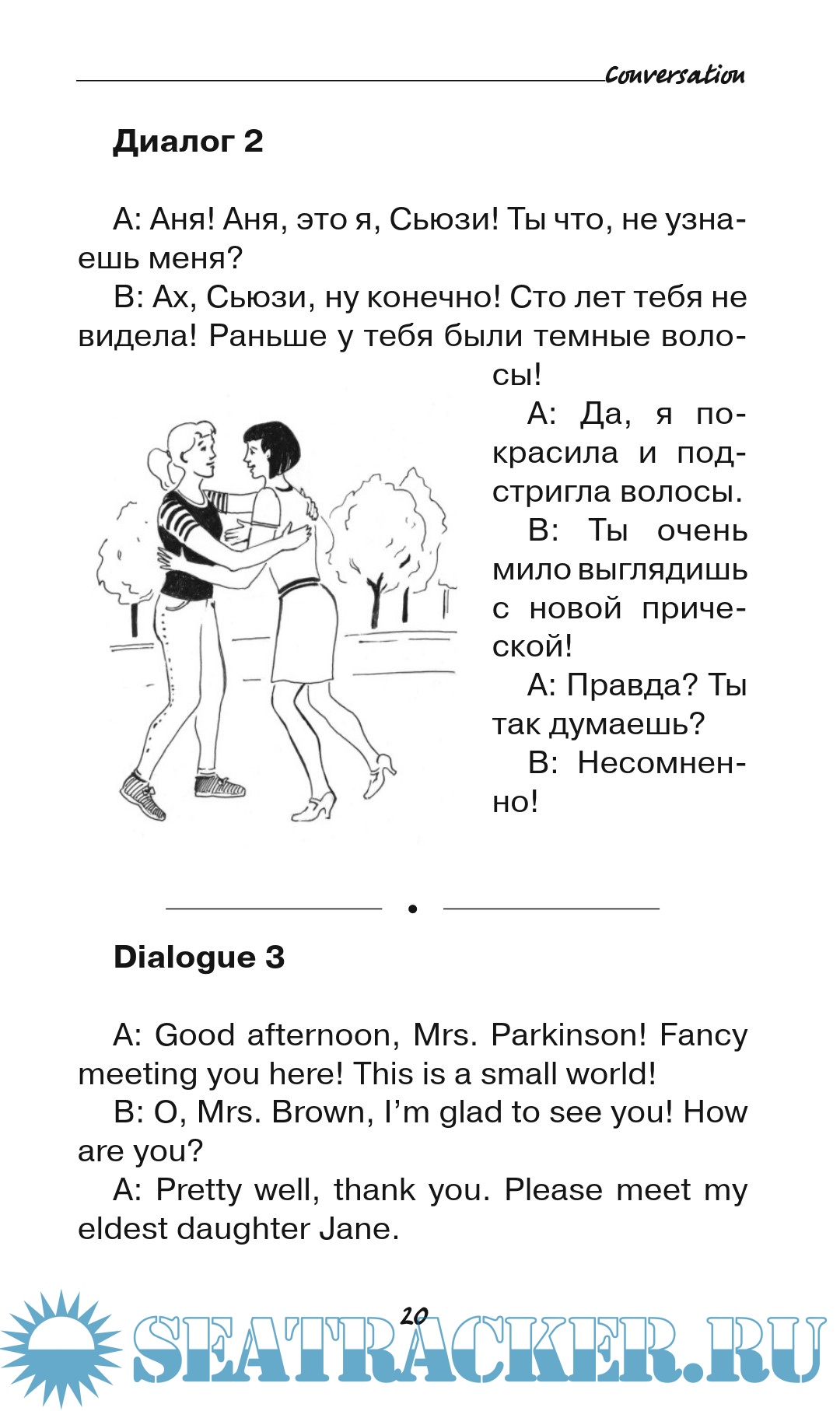 Изучение английского языка с помощью диалогов способствует запоминанию речевых конструкций и ситуативной лексики. Данная книга содержит свыше 1000 фраз для повседневного общения, а также 100 актуальных диалогов по основным темам.