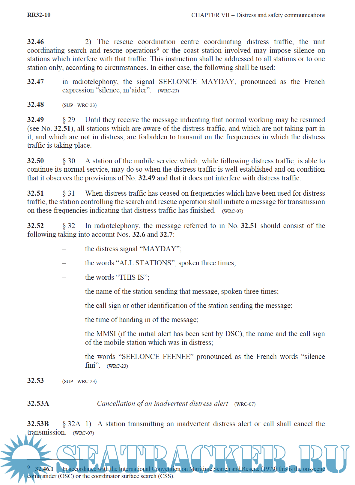 Year: 2024 Language: English Author: ITU Format: PDF Quality: Scanned pages + text layer Pages count: 453 Description: The Radio Regulations, Edition of 2024, contains the complete texts of the Radio Regulations adopted by the World Radiocommunication Conference of 1995 (WRC-95) and reviewed by the subsequent World Radiocommunication Conferences: WRC-97 (Geneva, 1997), WRC-2000 (Istanbul, 2000), WRC-03 (Geneva, 2003), WRC-07 (Geneva, 2007), WRC-12 (Geneva, 2012), WRC-15 (Geneva, 2015), WRC-19 (Sharm el-Sheik, 2019) and WRC-23 (Dubai, 2023).