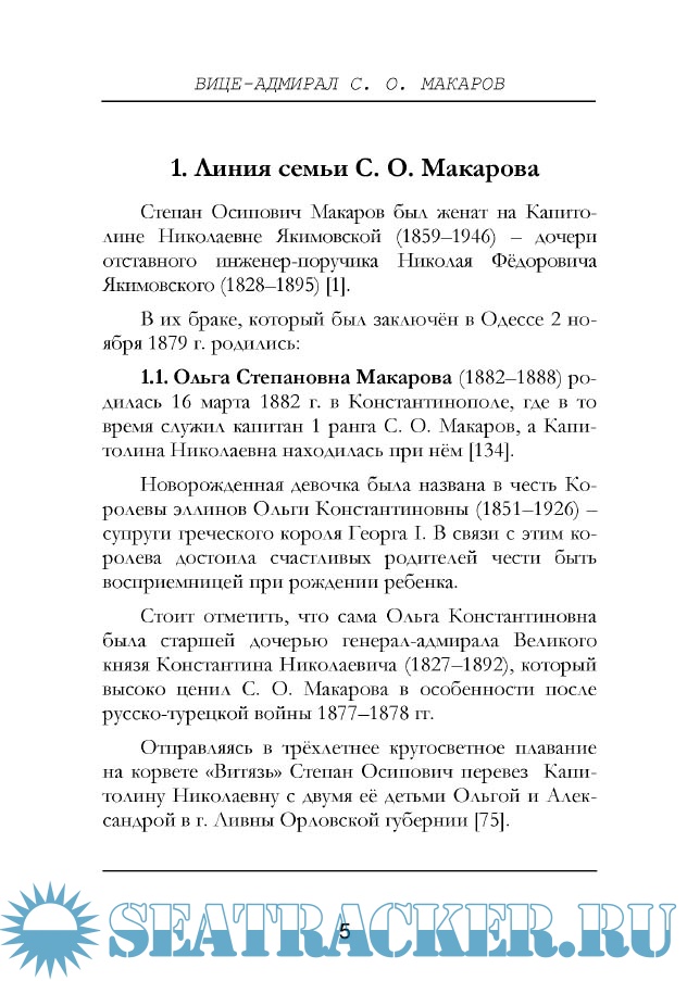 Первый том составляют материалы, которые непосредственно относятся к его жизни и деятельности, начиная от рождения и заканчивая трагической гибелью 31 марта 1904 г. на броненосце «Петропавловск» вблизи Порт-Артура.