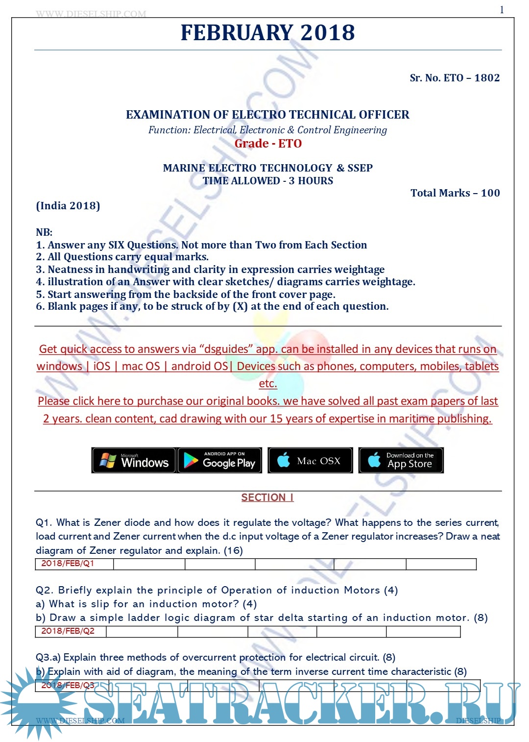 Description: Question Paper Set for Electro Technical Officer (E.T.O) MMD Examinations, India