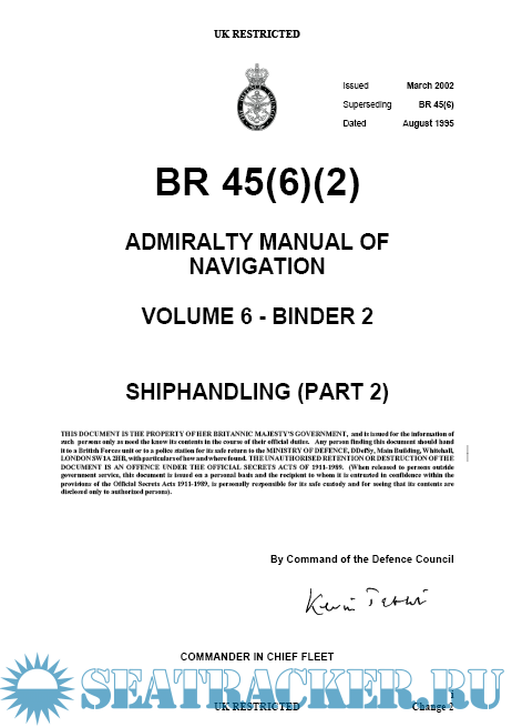 Admiralty Manual of Navigation- BR45 - VOL 6 - Part 1 Ship handling - Commander in Chief Fleet…