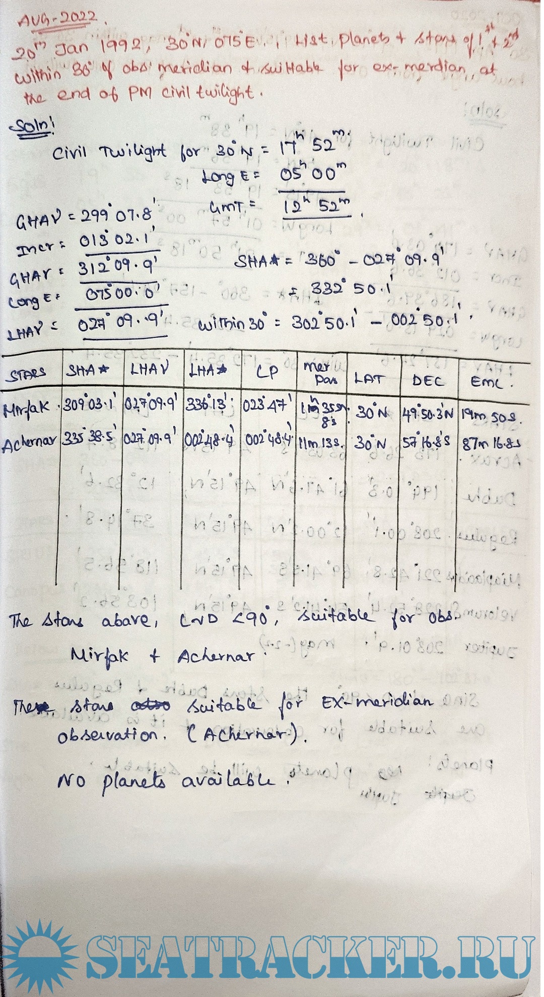 Phase I - Terrestrial & Coastal Navigation - Solved Part C: Q. 7 & 8 (Jan 2025 ~ Jan 2018) from…