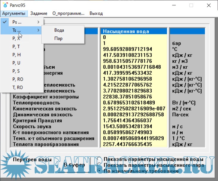 Описание: Программа предназначена для расчёта и анализа теплофизических свойств воды и водяного пара в широком диапазоне температур и давлений на основе международной научной модели IAPWS-95 (International Association for the Properties of Water and Steam).