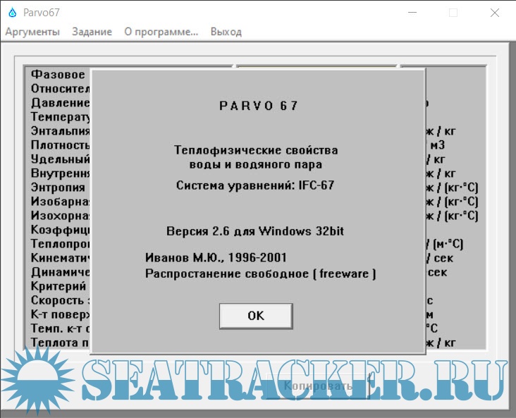 Год выпуска: 2001 Версия: 2.6 (Windows 32-bit) Разработчик: Иванов М. Ю. Платформа: Windows Совместимость с 64-битными ОС: да Системные требования: Windows (32-bit) Язык интерфейса: Русский Таблэтка: Не требуется Название: Термодинамические свойства воды и водяного пара (PARVO 67) Система уравнений: IFC-67 (Industrial Formulation 1967) Лицензия: Бесплатное распространение (Freeware) Описание: Программа PARVO 67 реализует расчёт термодинамических и теплофизических свойств воды и водяного пара в широком диапазоне температур и давлений на основе стандартной формулы **IFC-67**, принятой в 1967 году для промышленного применения (принята как основа «ASME Steam Tables»). :contentReference[oaicite:0]{index=0} С помощью PARVO 67 можно вычислять такие параметры, как: