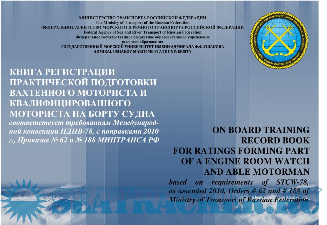 Книга регистрации практической подготовки вахтенного моториста и квалифицированного моториста на борту судна